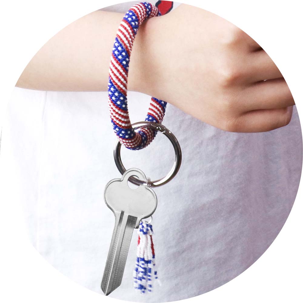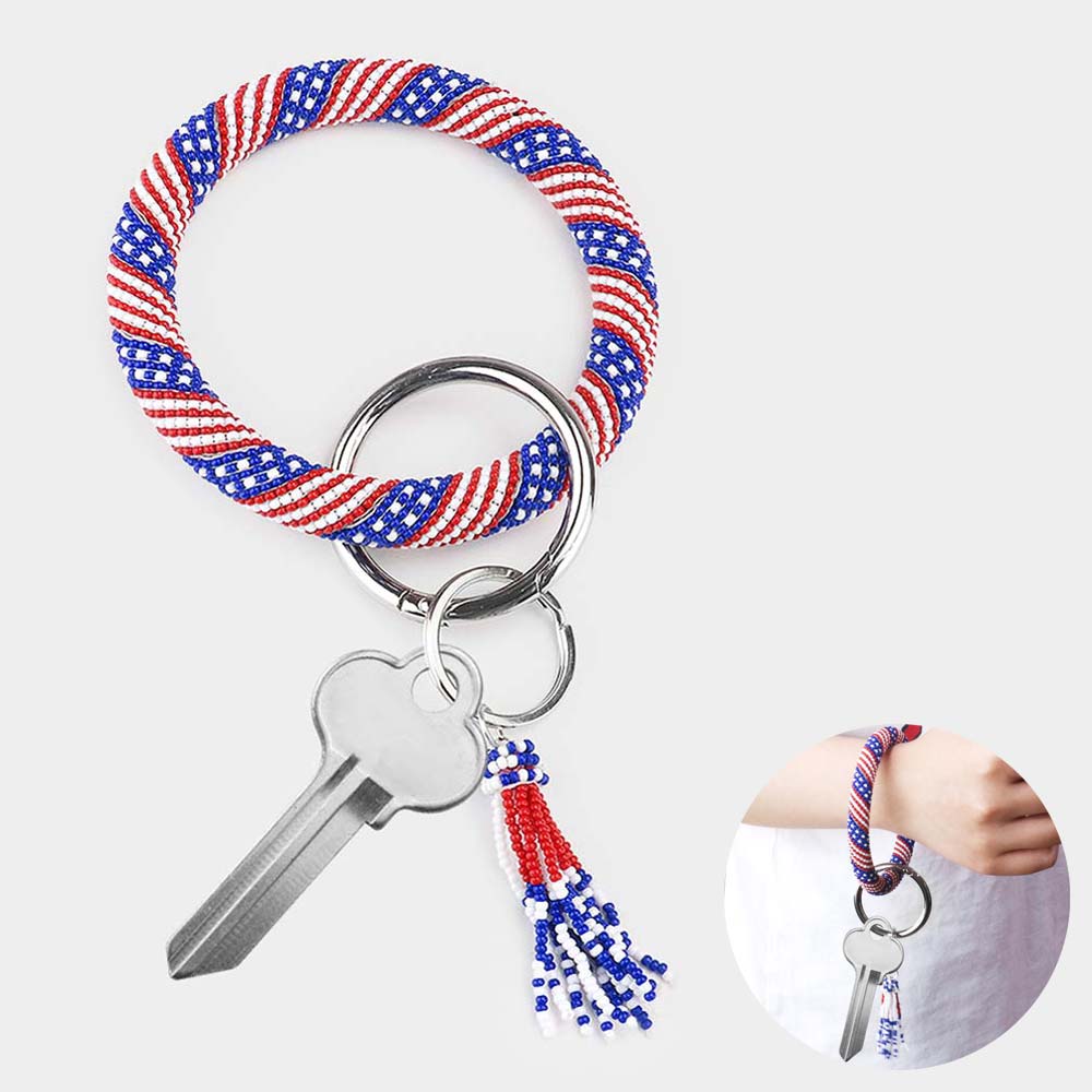 Seed Beaded Patriotic Pattern Tassel Key Chain / Bracelet
