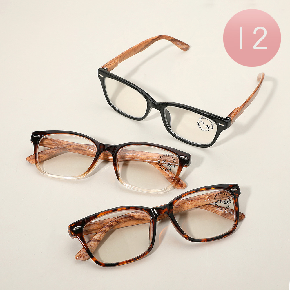 12PCS - Classic Rectangular Frame Clear Lens Reading Glasses