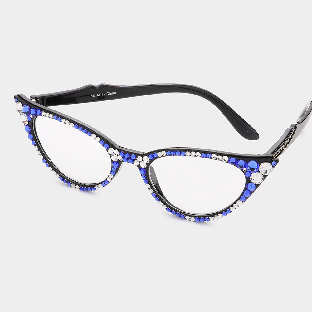 Crystal Embellished Clear Lens Wayfarer Sunglasses