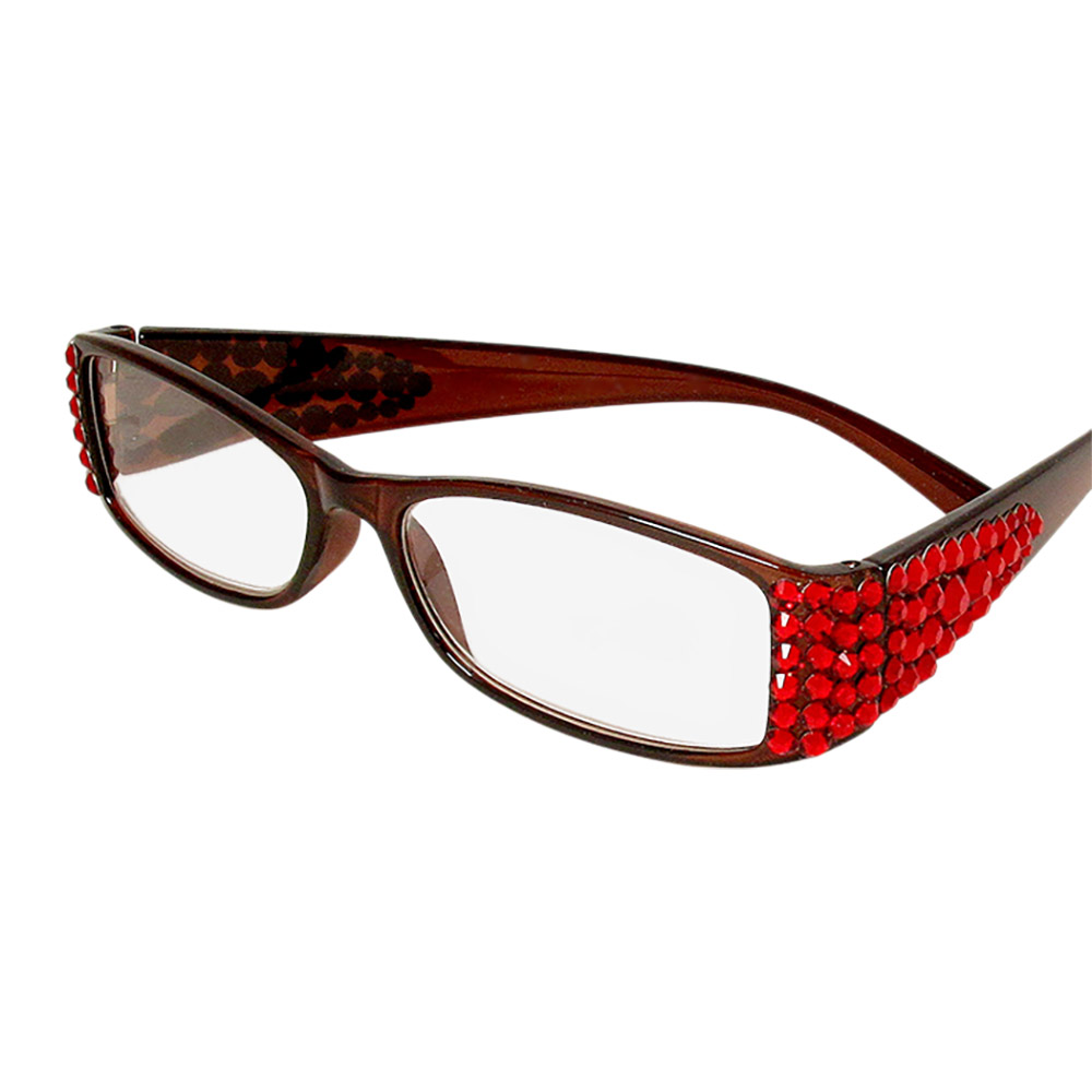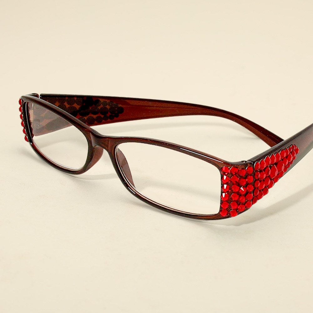 • Stylish reading glasses designed with sparkling embellishments along the frames. Offering both function and flair, they bring a touch of glamour to everyday eyewear while ensuring comfort and clarity for daily use.