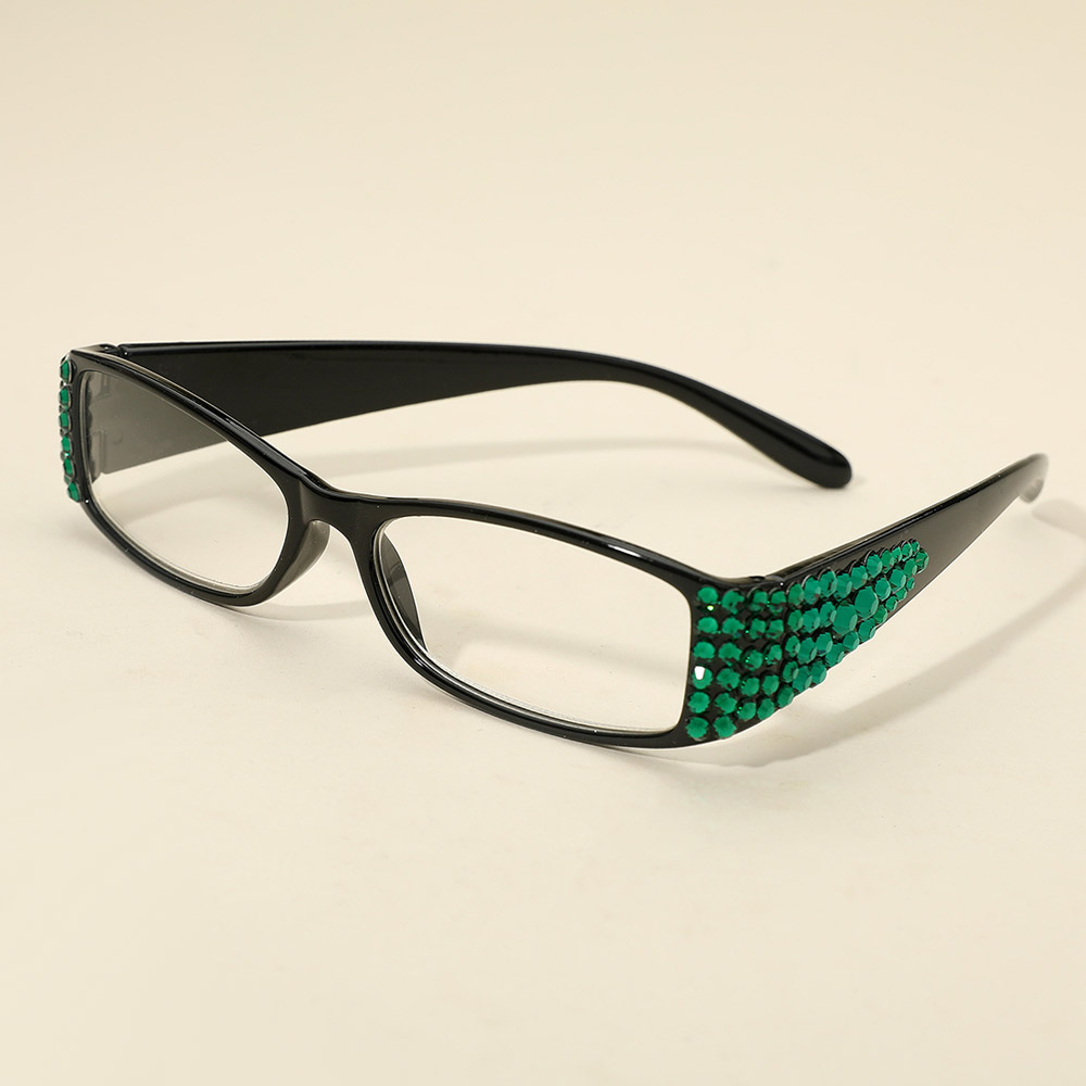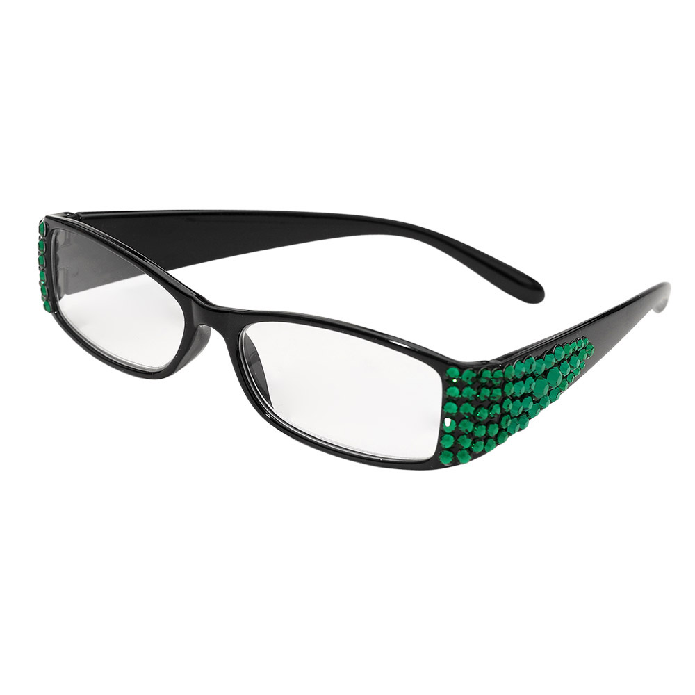 • Stylish reading glasses designed with sparkling embellishments along the frames. Offering both function and flair, they bring a touch of glamour to everyday eyewear while ensuring comfort and clarity for daily use.