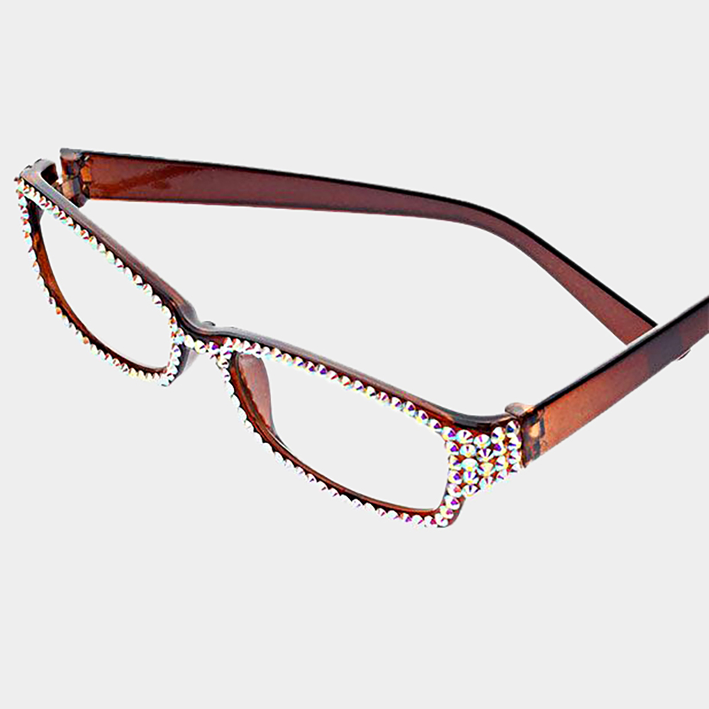 Leopard Pattern Crystal Pave Rectangular Reading Glasses