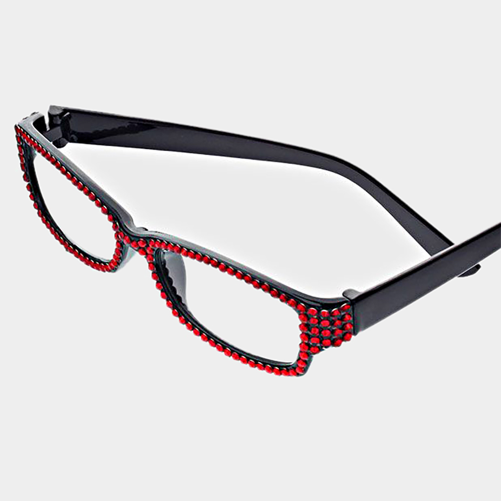 • Stylish rectangle glasses accented with sparkling rhinestones for a bold and playful look. Perfect for parties, themed events, or everyday wear, these frames combine comfort and standout glamour in a fun statement accessory.