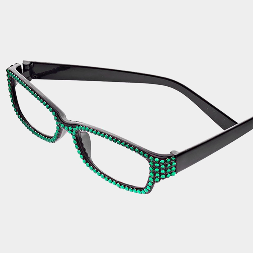Details • Size : 5.5" X 1.25" • Handmade with Genuine Crystals • Stylish rectangle glasses accented with sparkling rhinestones for a bold and playful look. Perfect for parties, themed events, or everyday wear, these frames combine comfort and standout glamour in a fun statement accessory.