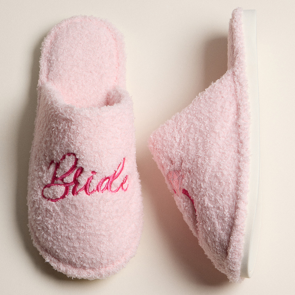 Details • Size : 6 Pairs Assorted size in each pack • 3 Small, 3 Medium • M: women size 9-10 (250mm) 40-41 • L: women size 11-12 (260mm) 42-43 • Material : 100% Polyester • Celebrate the bride-to-be with these cozy fuzzy slippers featuring “Bride” embroidery and a ring motif. Ideal for wedding prep, bridal showers, or lounging in style, they offer comfort with a fun and festive flair. A perfect gift for any bride’s special moments.