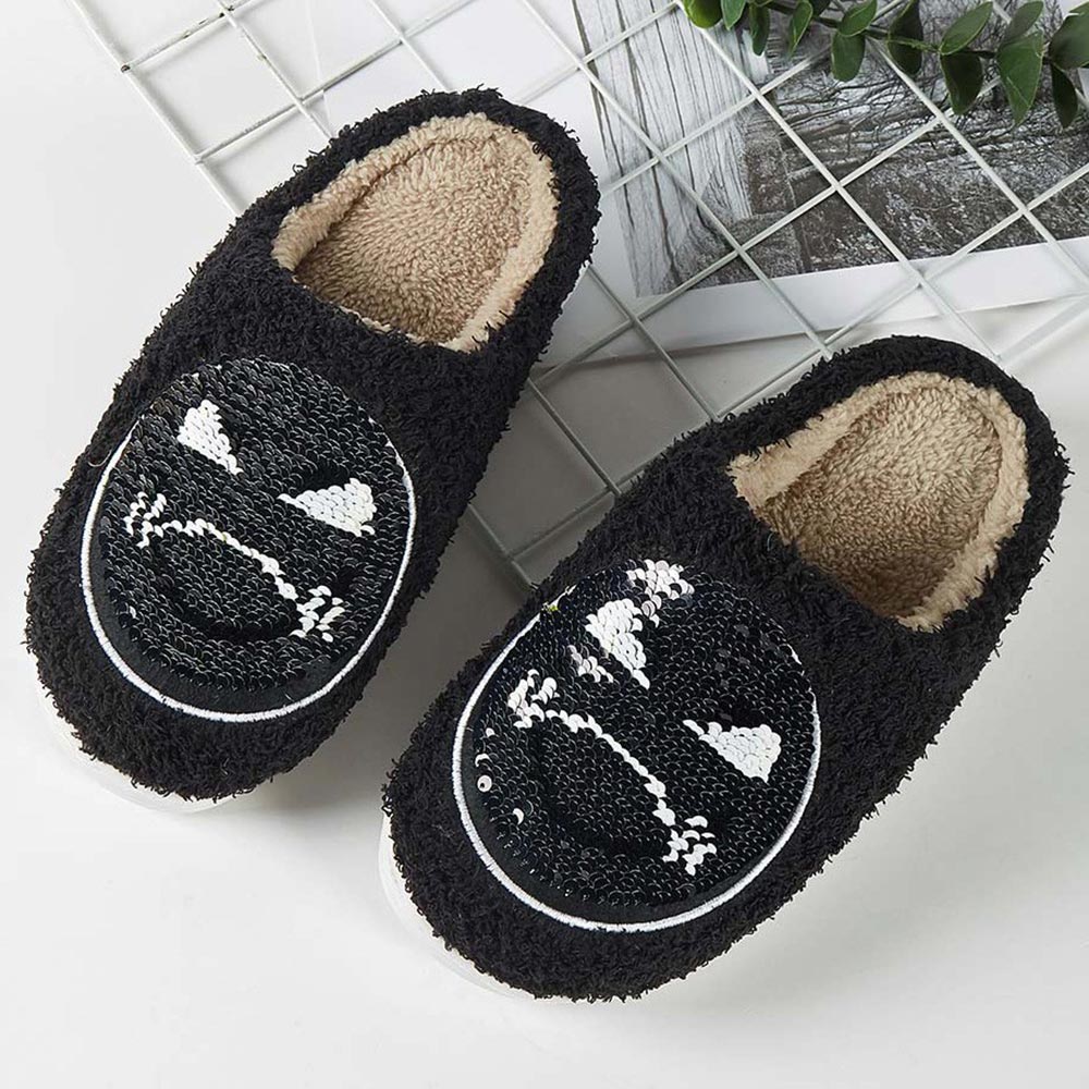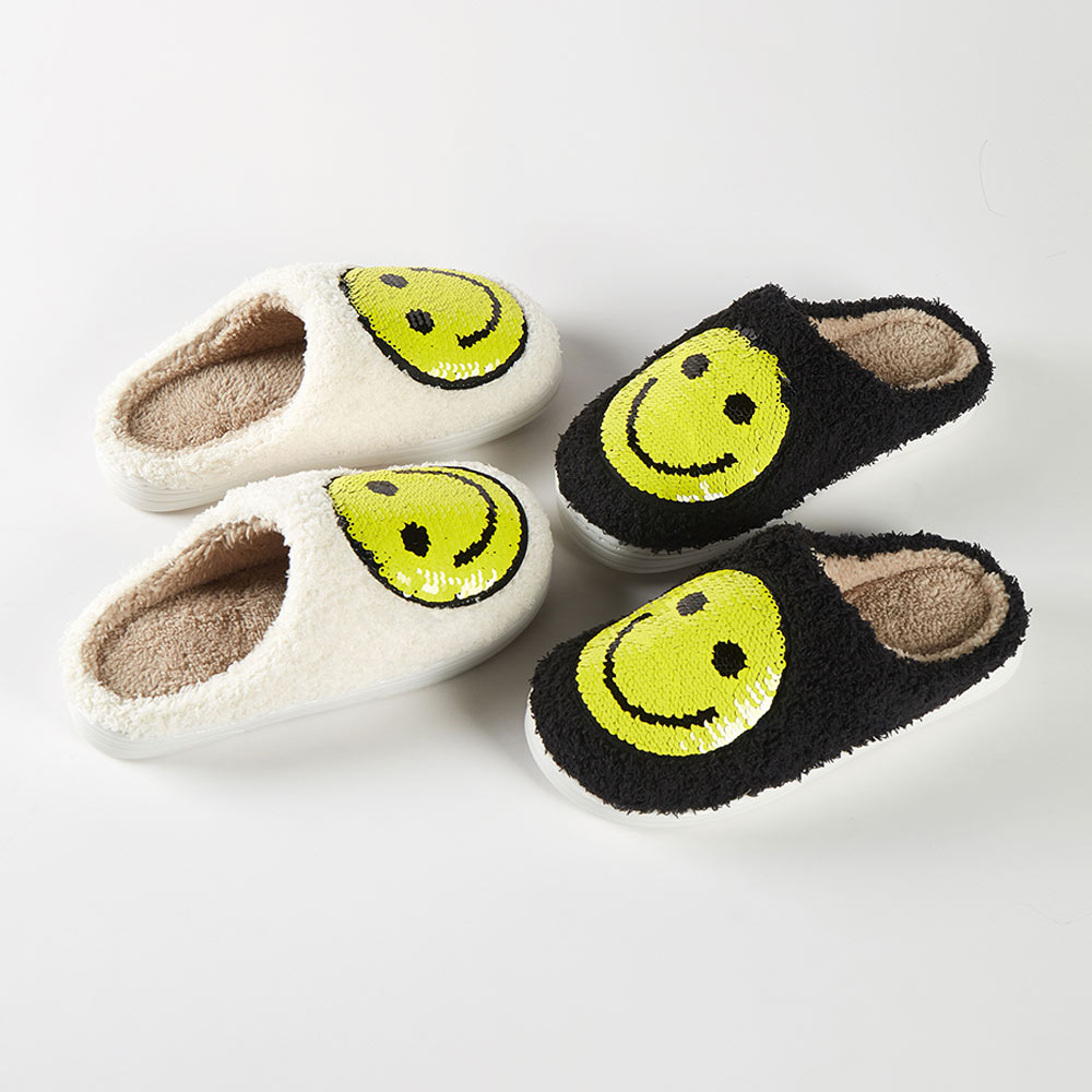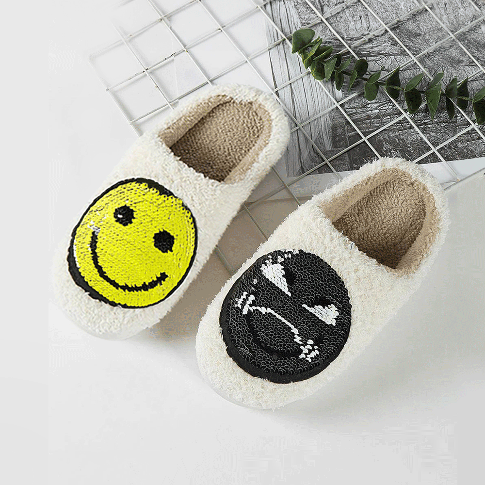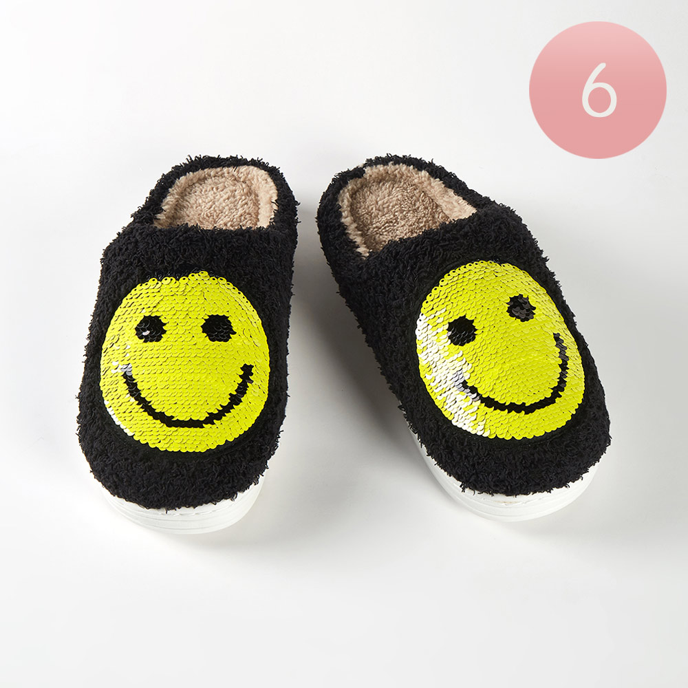 6Pairs - Reversible Sequin Smile Soft Home Indoor Floor Slippers