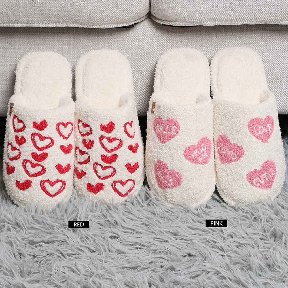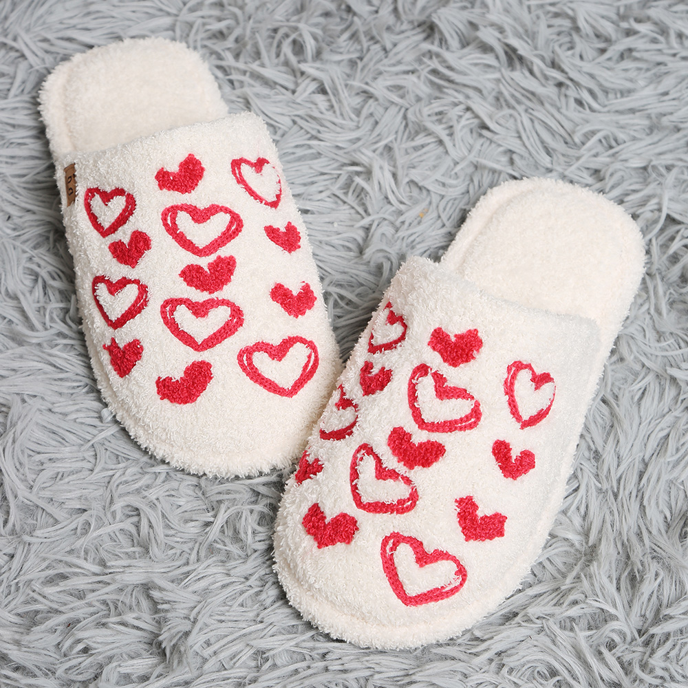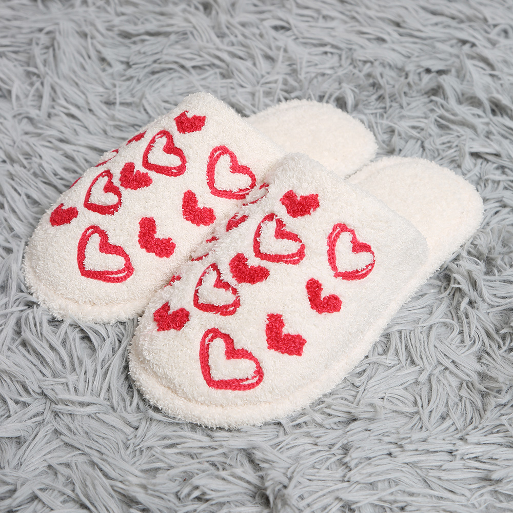 Candy Heart Embroidered Soft Home Indoor Floor Slippers