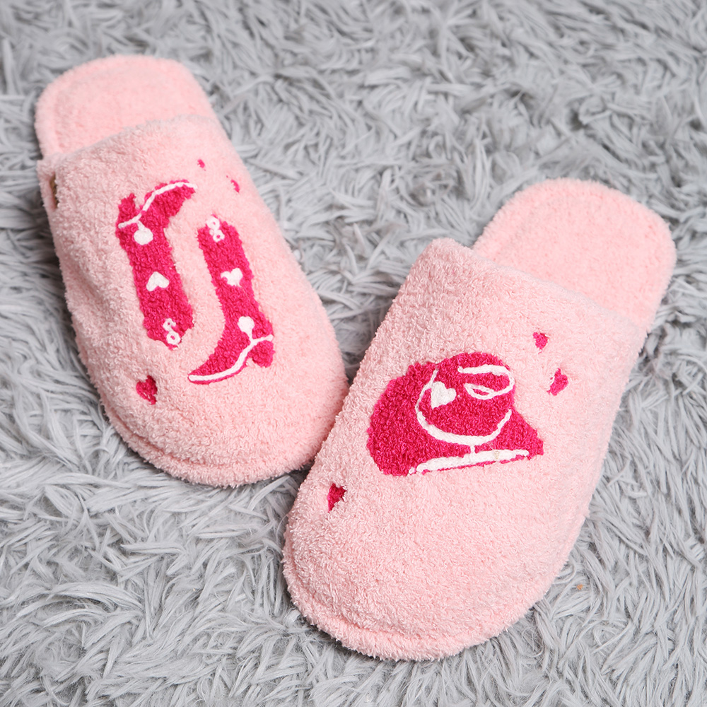 Cowgirl / Cowboy Embroidered Soft Home Indoor Floor Slippers