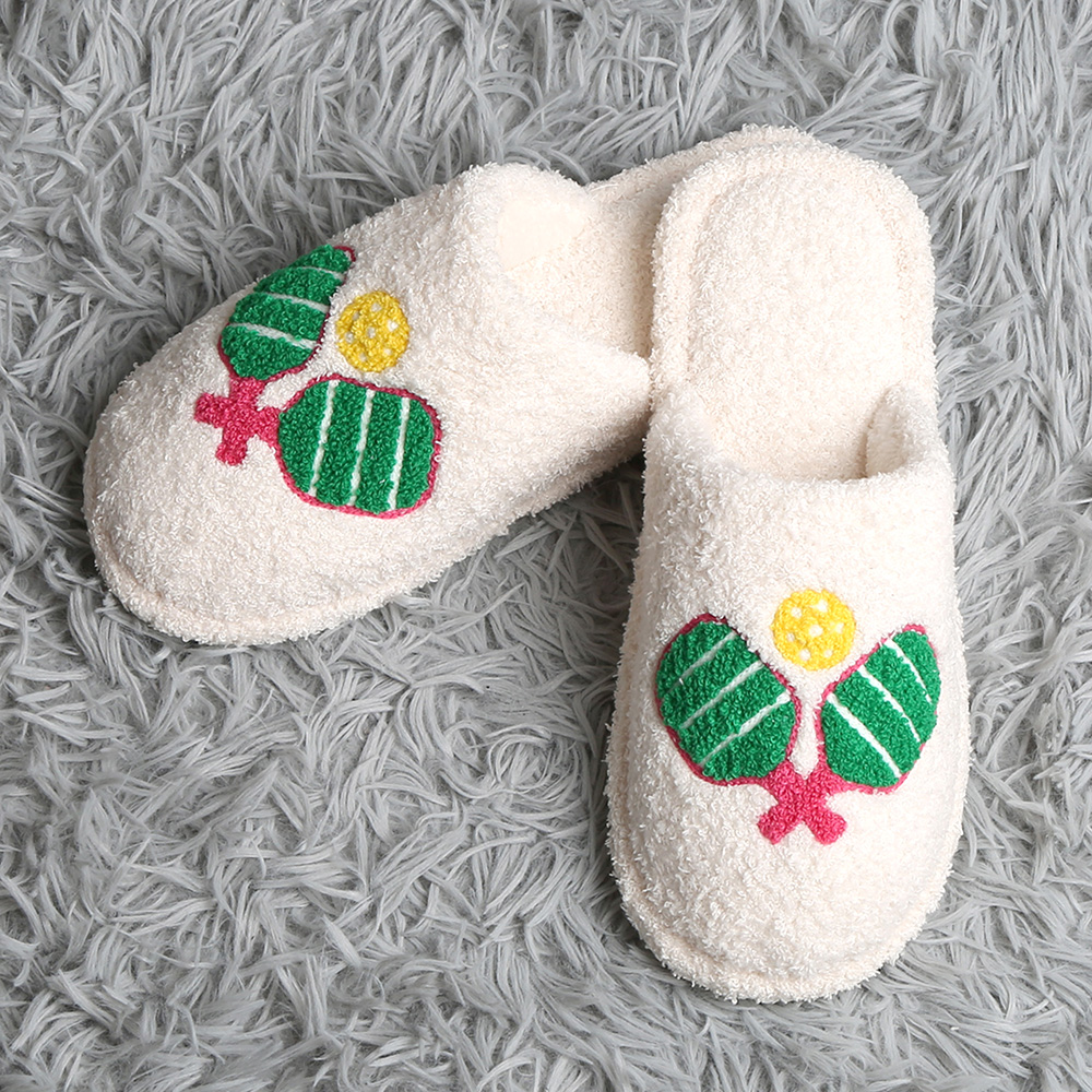 Details • Size : M/L (Women 8-10, Men 7-9) • Material : 100% Poly. Microfiber • Keep your feet warm and comfortable with these cozy indoor slippers featuring a festive embroidered design. Perfect for lounging at home during the season, they combine comfort, style, and holiday spirit, making them a great gift or personal treat.