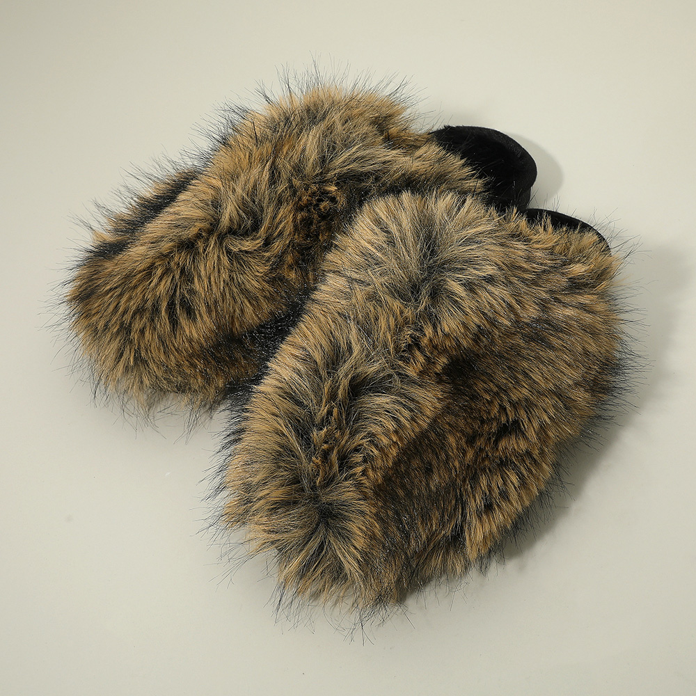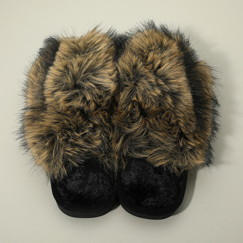 Fluffy Faux Fox Fur Indoor Floor Slippers