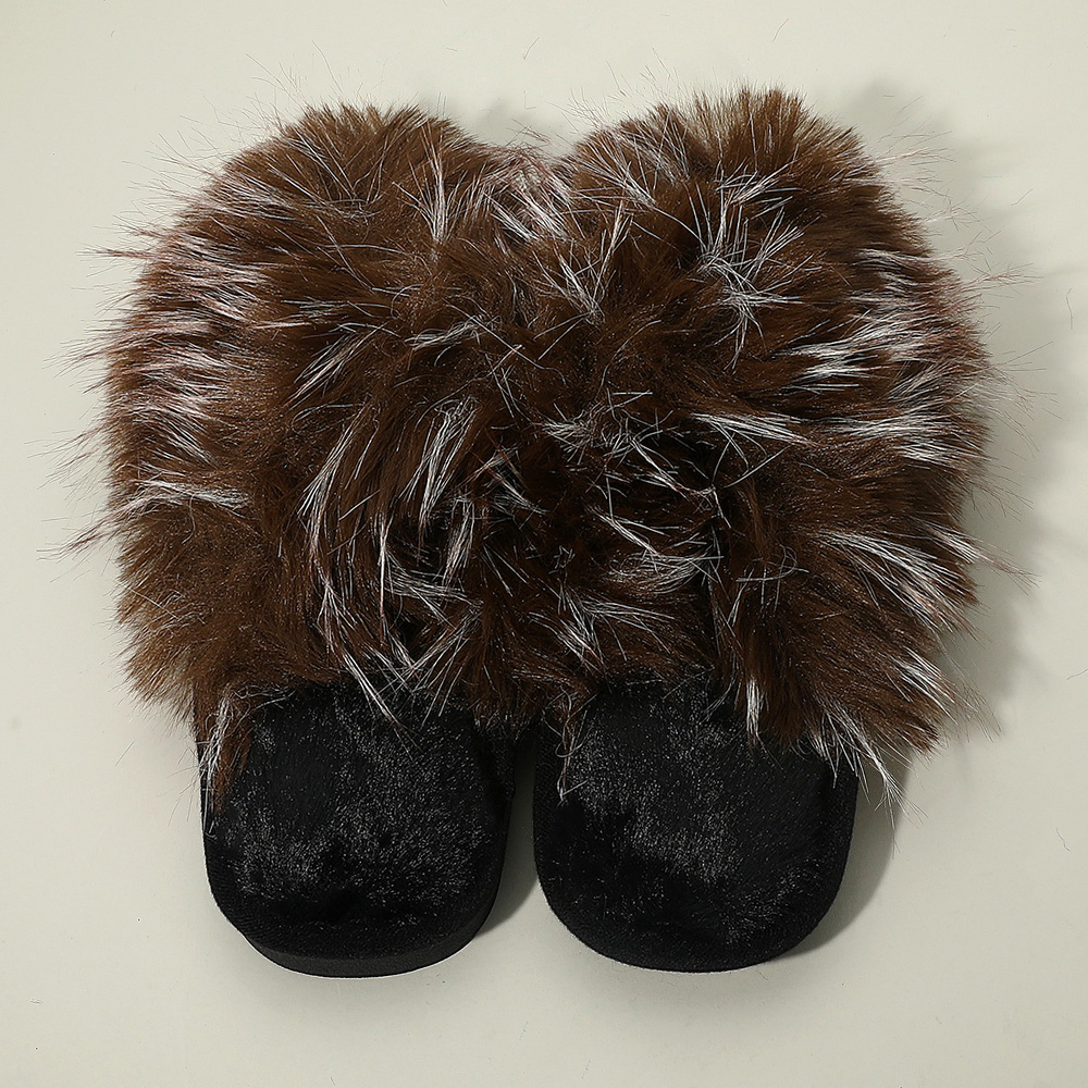 Fluffy Faux Raccoon Fur Indoor Floor Slippers