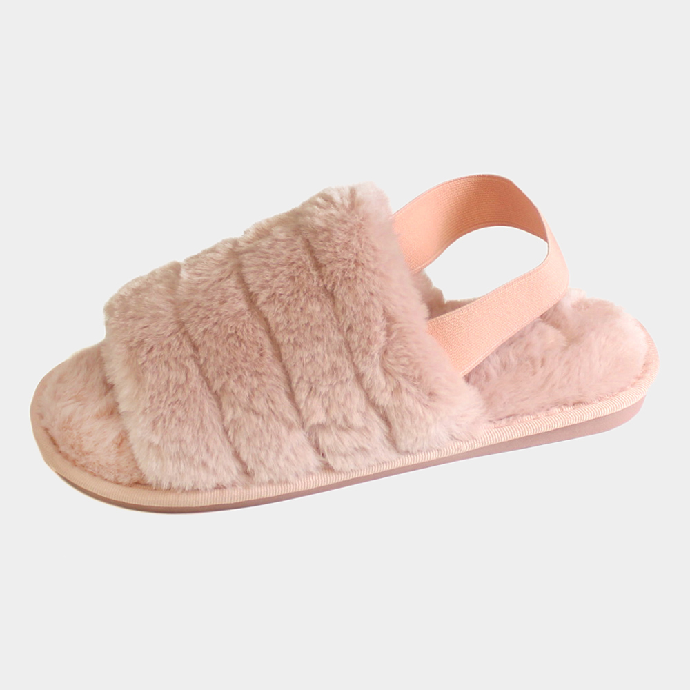 Fuzzy Faux Fur Elastic Slingback Strap Indoor Slide Slippers