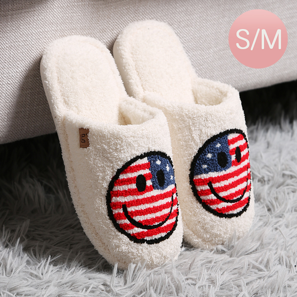Happy Face American Flag Print Soft Home Indoor Floor Slippers