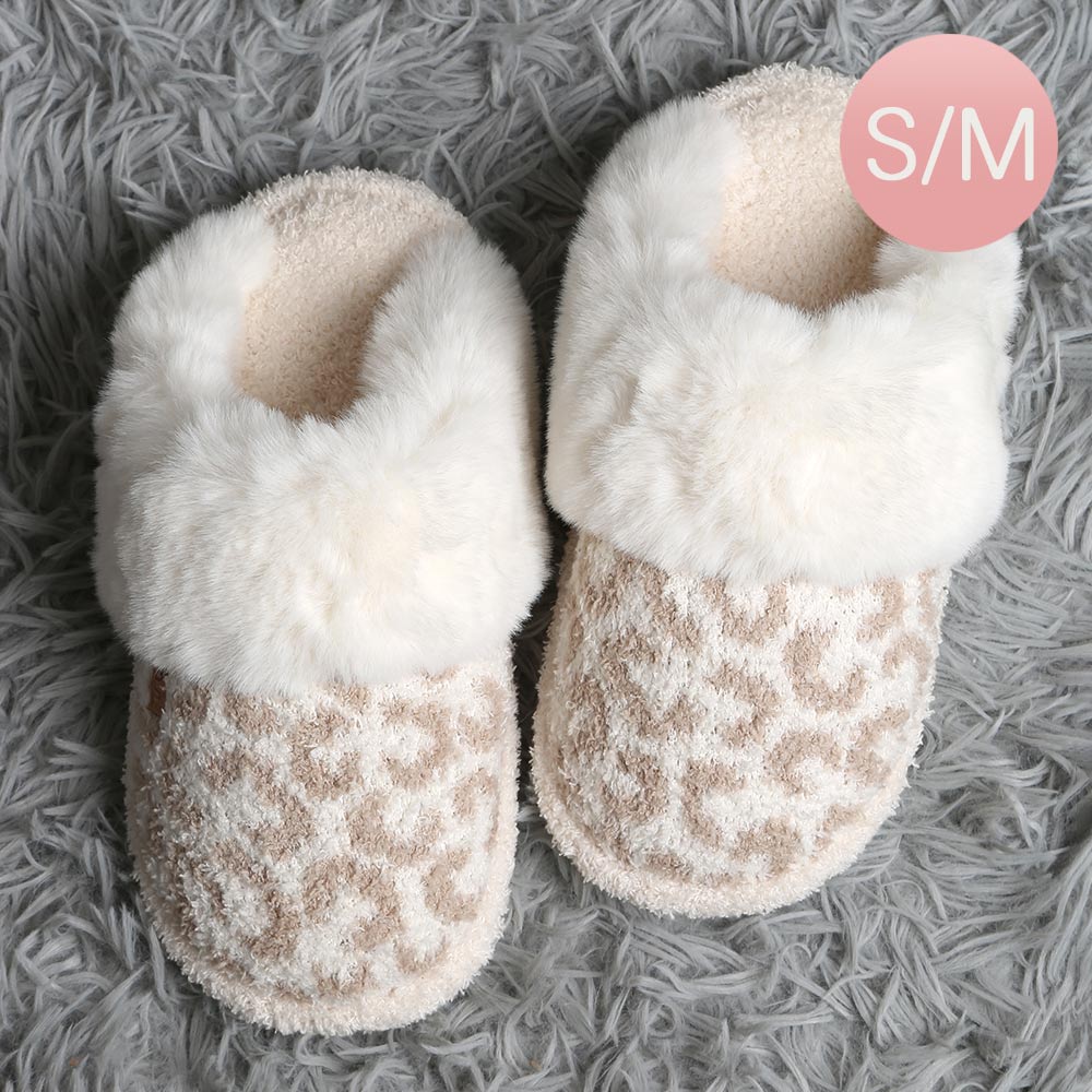 Leopard Faux Fur Cuff Soft Home Indoor Floor Mule Slippers