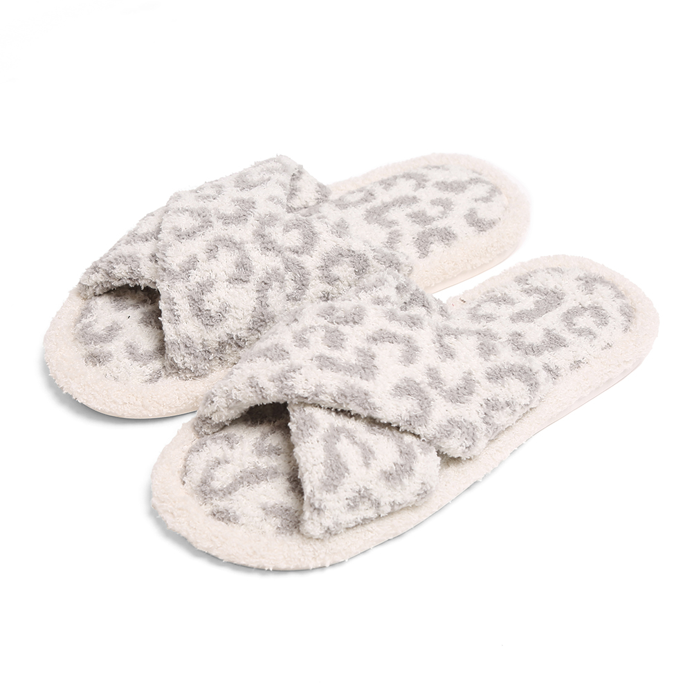 Leopard Patterned Crisscross Soft Home Indoor Floor Slippers