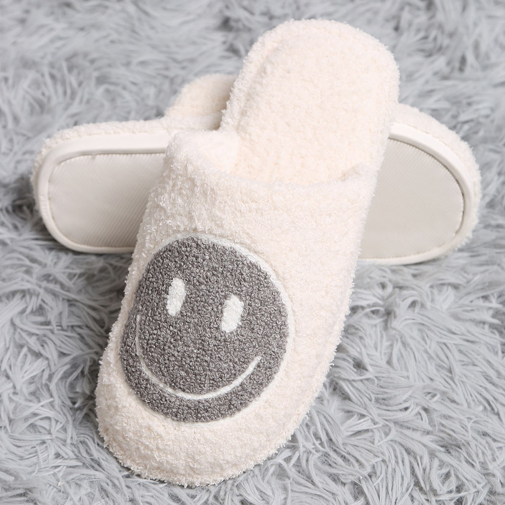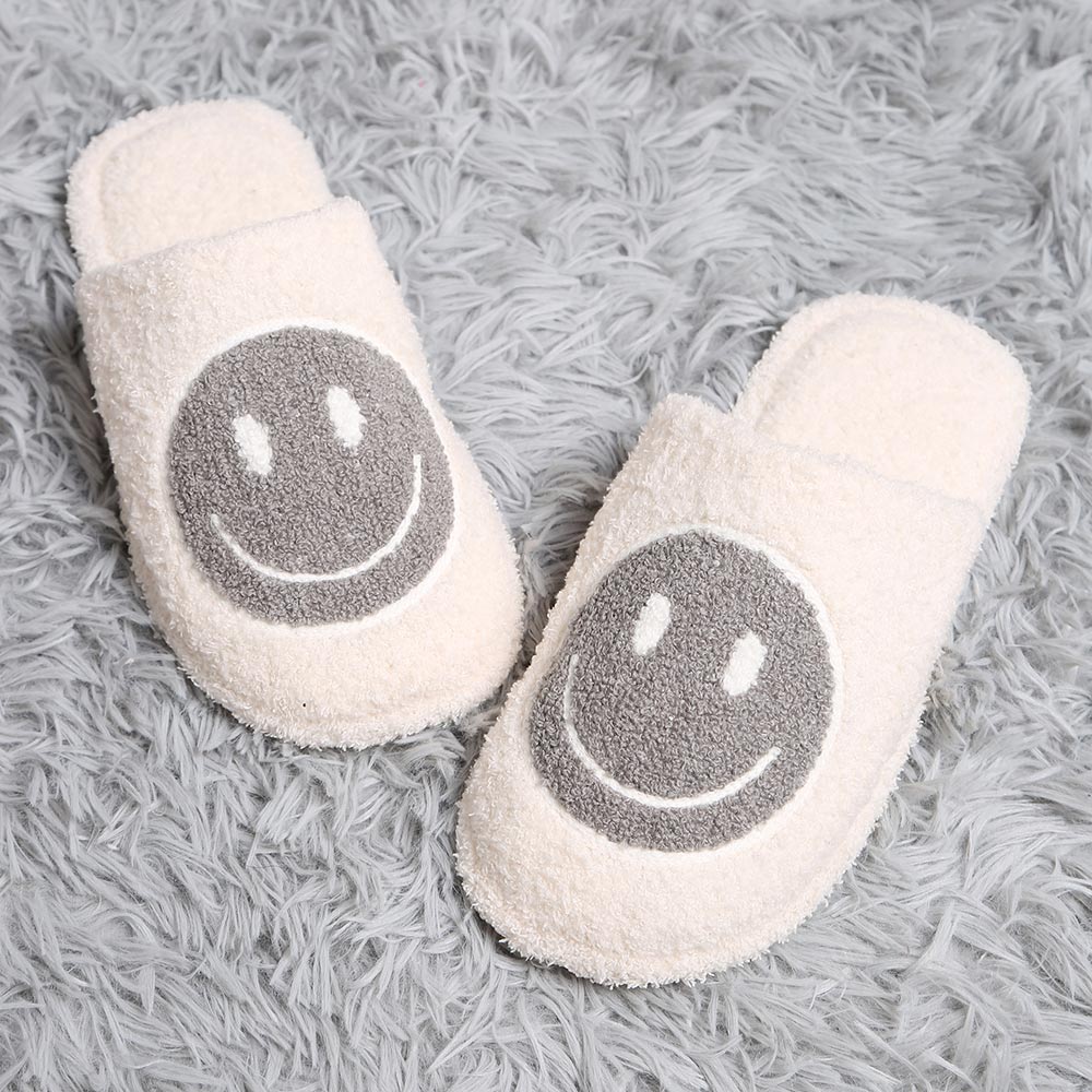 Smile Accented Leopard Patterned Soft Home Indoor Floor Slippers