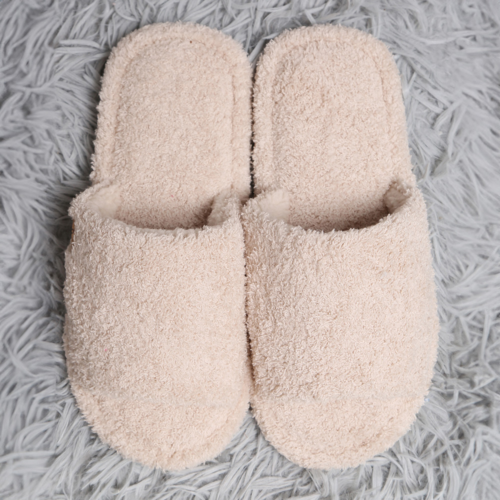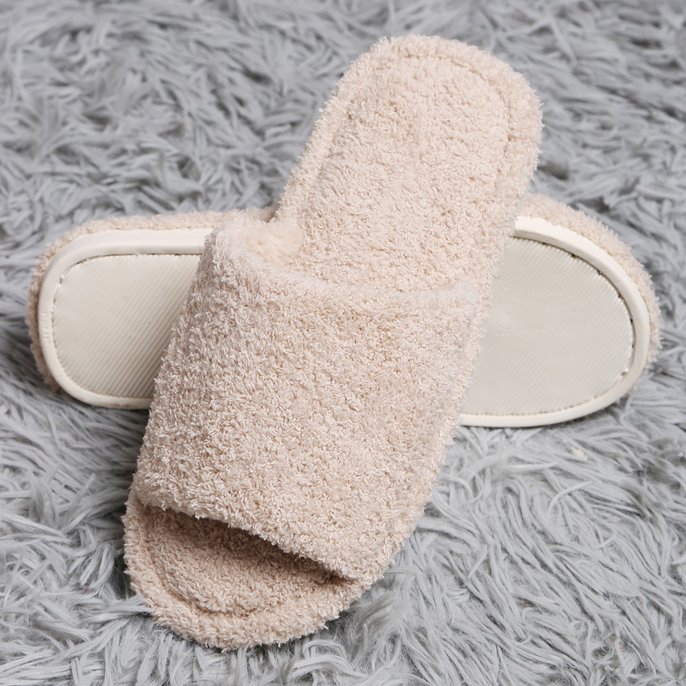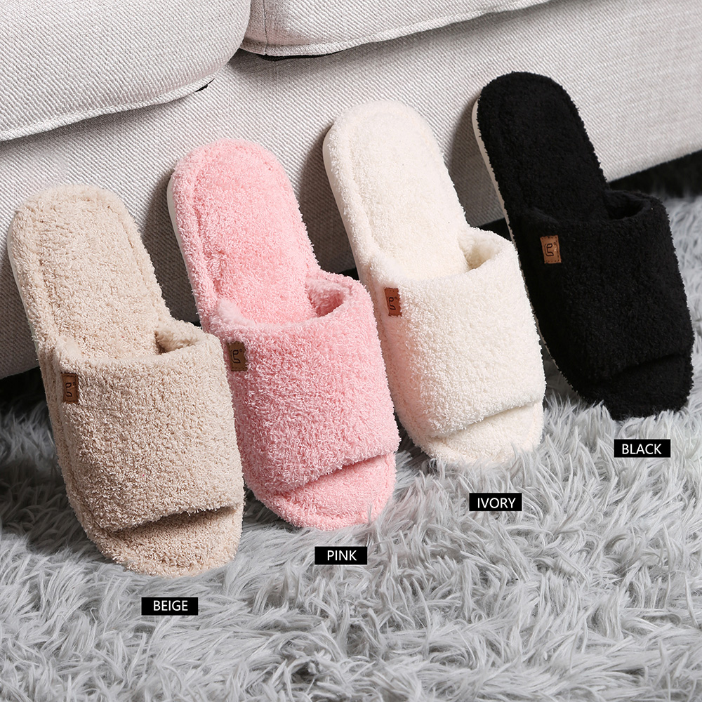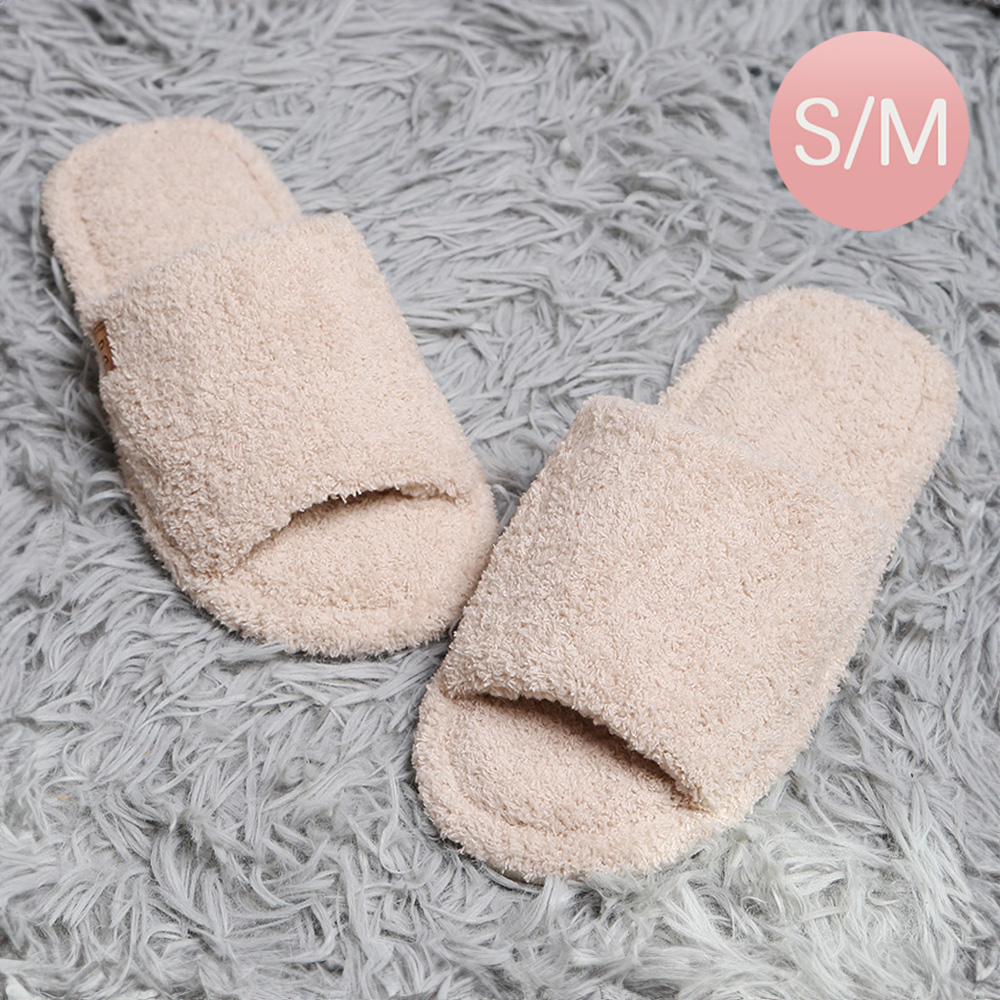 Details • Size : S/M (Women 6-8, Men 5-7) • Material : 100% Poly. Microfiber • Comfortable open toe slippers in S/M size for everyday indoor wear. Soft, plush design offers a relaxed feel and easy slip-on style. Perfect for home lounging or casual use, providing all-day comfort and ease.