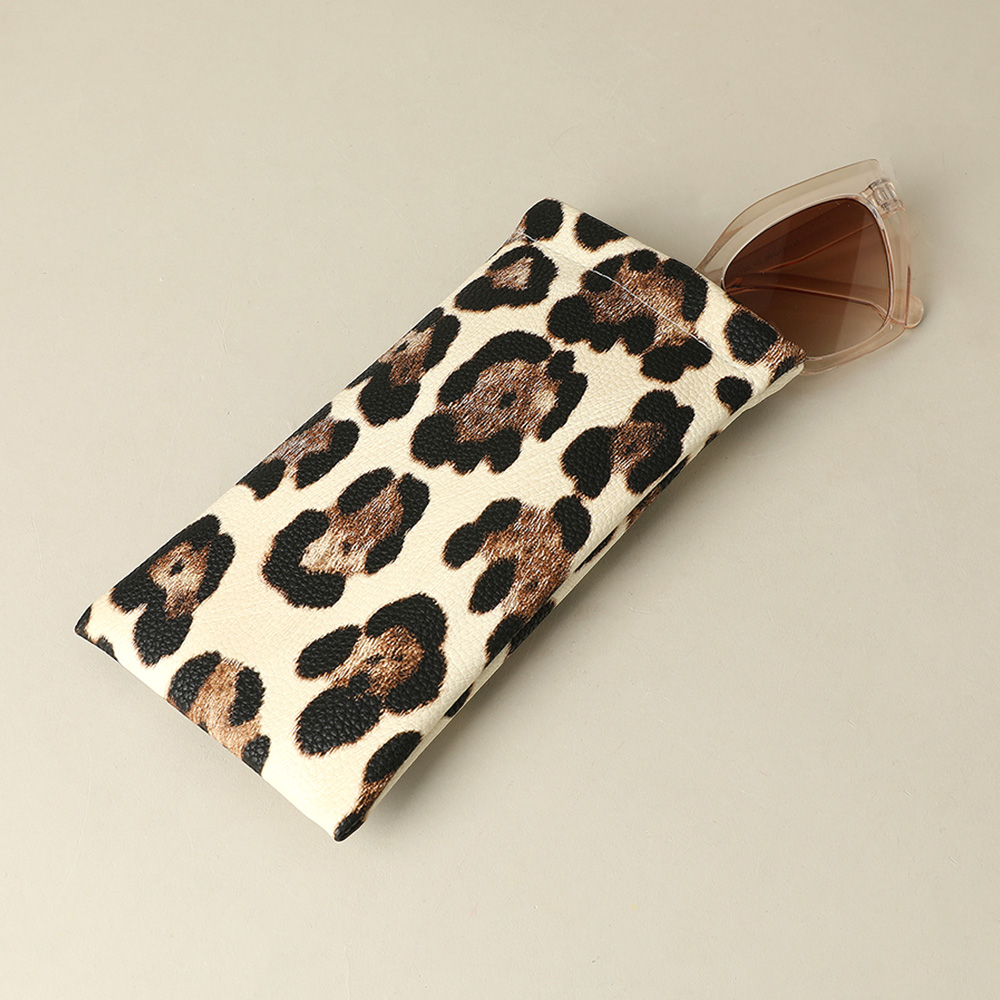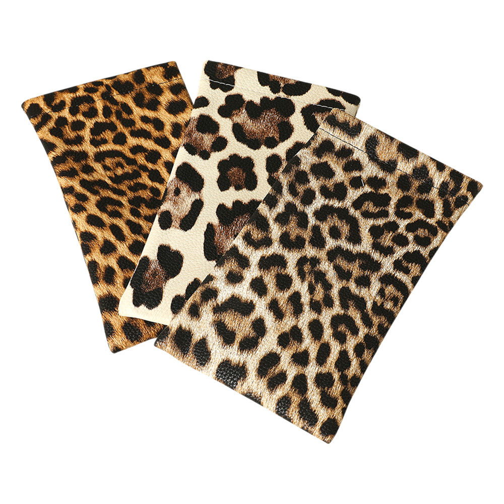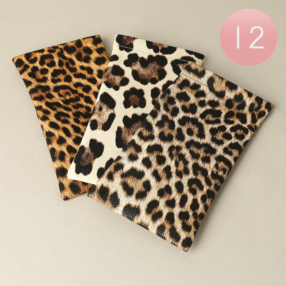 12PCS - Faux Leather Leopard Pattern Printed Flat Sunglasses Case