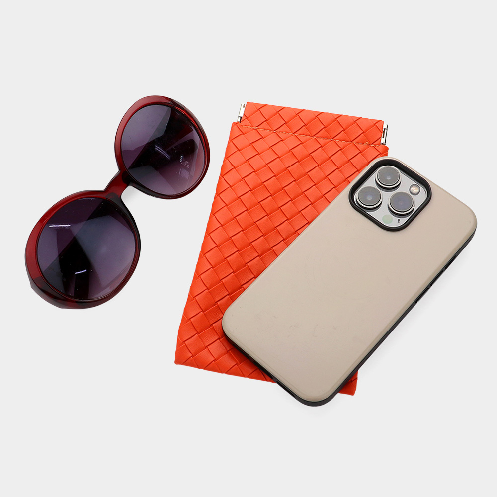 Faux Leather Weave Sunglasses Case Pouch / Phone Case Pouch