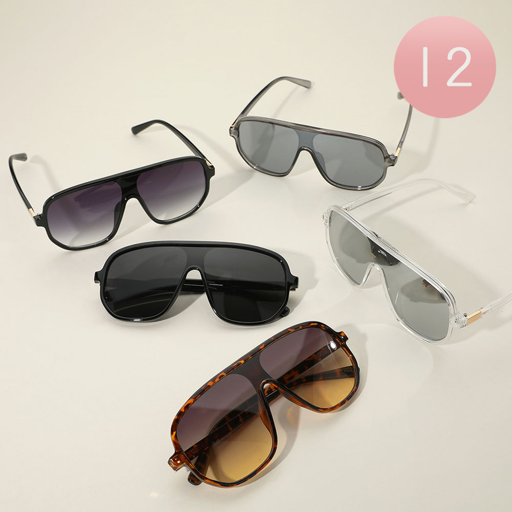 12Pairs - Retro Shield Visor Frame Sunglasses
