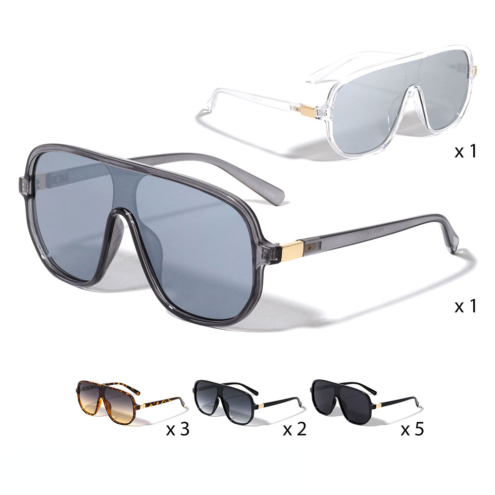 • Bold and stylish oversize shield sunglasses in assorted colors. Retro visor-inspired frames with full UV400 protection. Perfect for high-impact fashion and everyday sun coverage.
