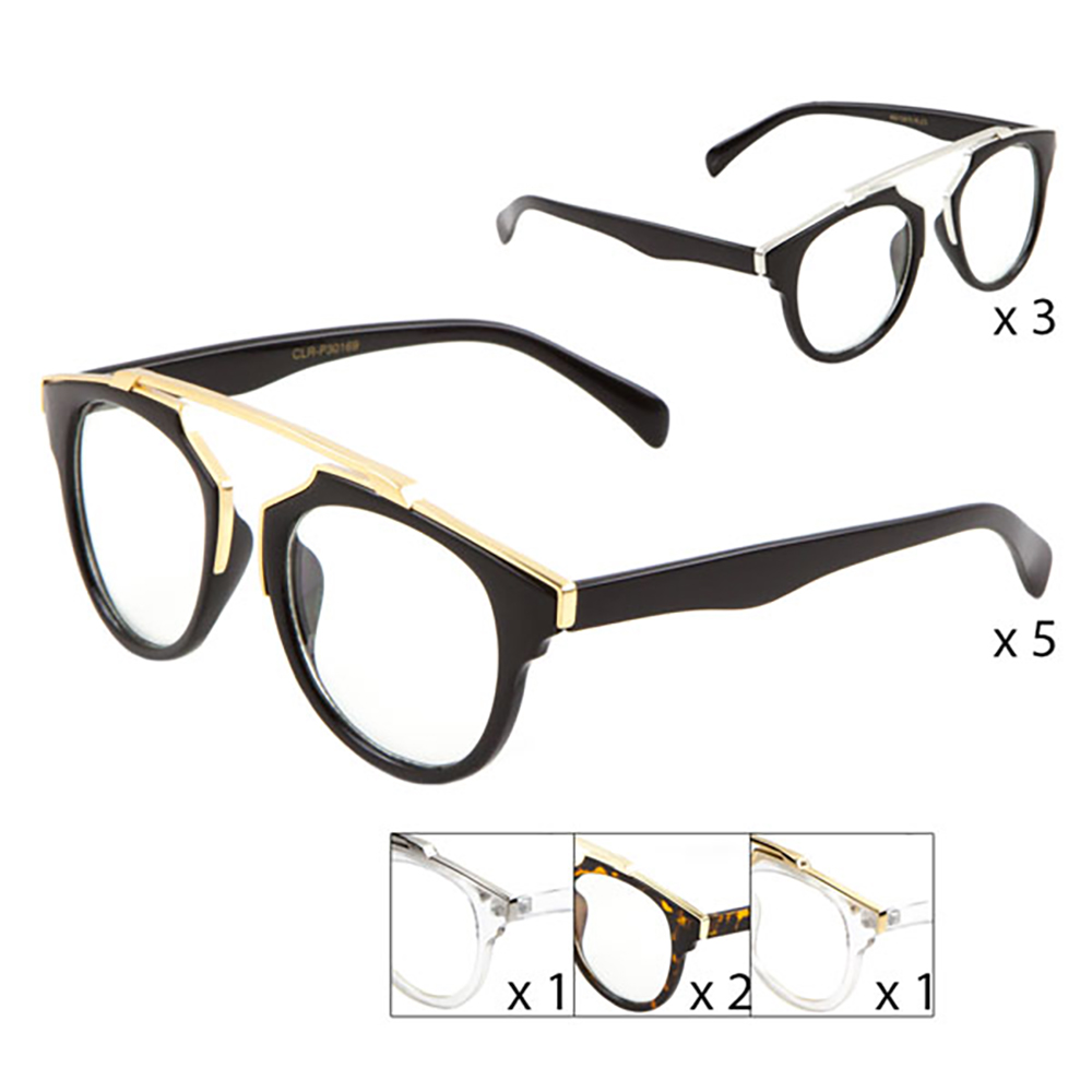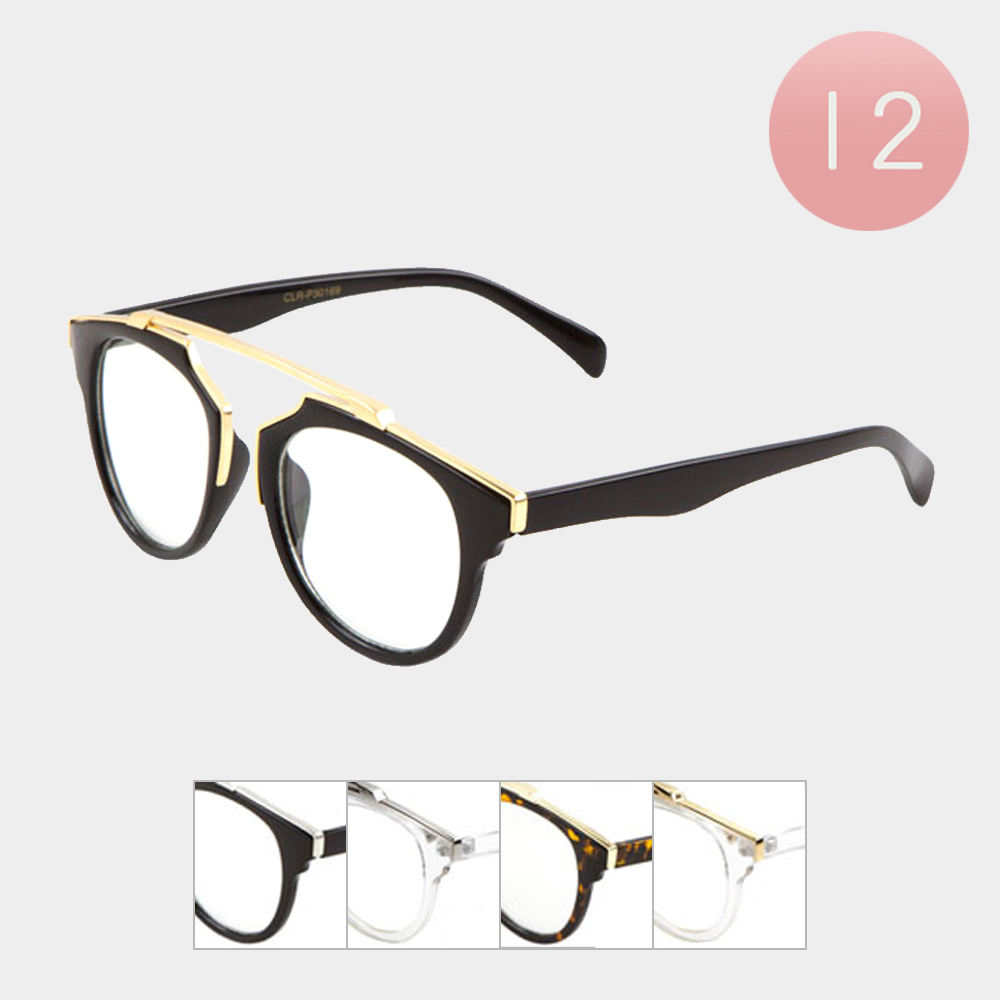 12PCS - Double Bridge Clear Lens Wayfarer Sunglasses