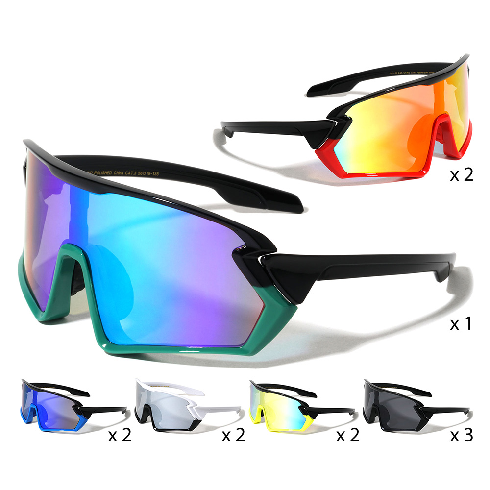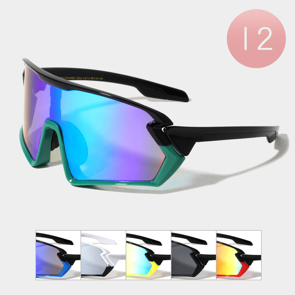 12PCS - One Piece Blade Colored Lens Shield Sport Sunglasses