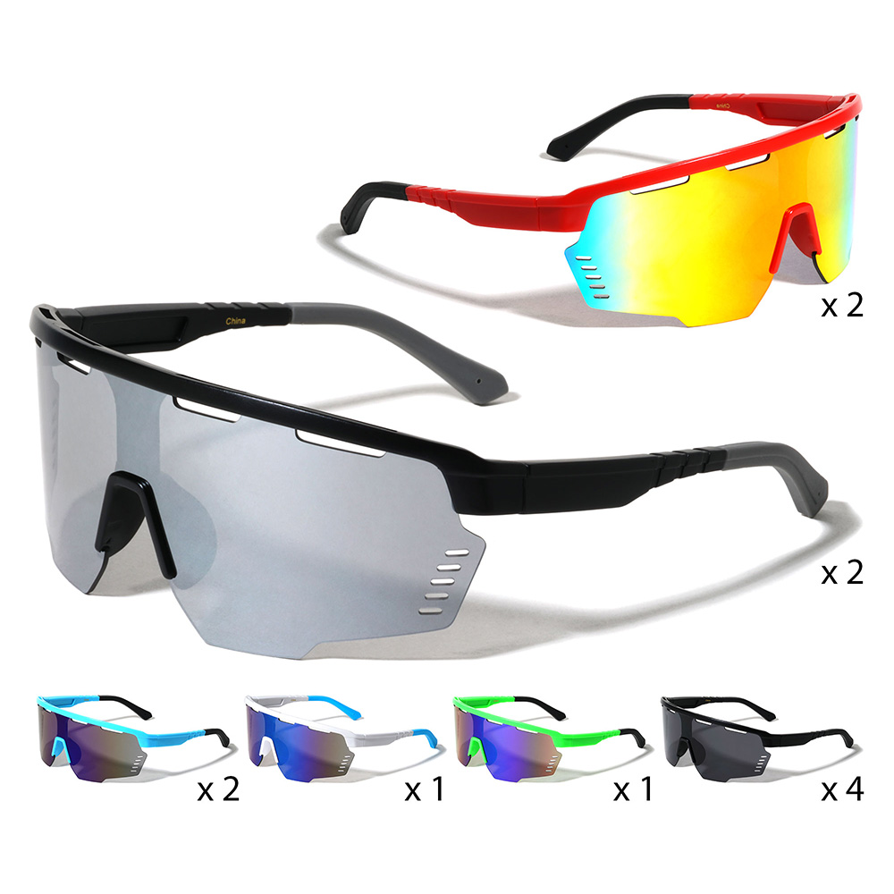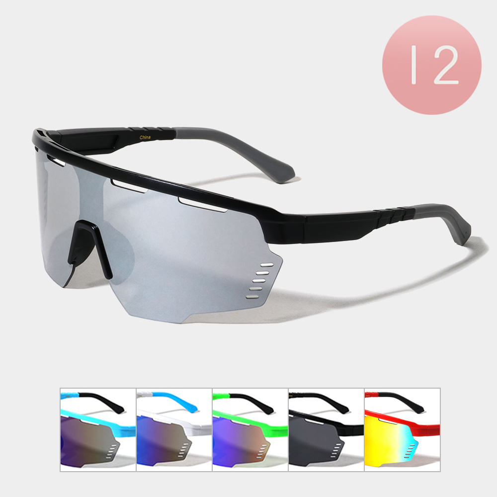 12PCS - One Piece Colored Lens Shield Sport Sunglasses