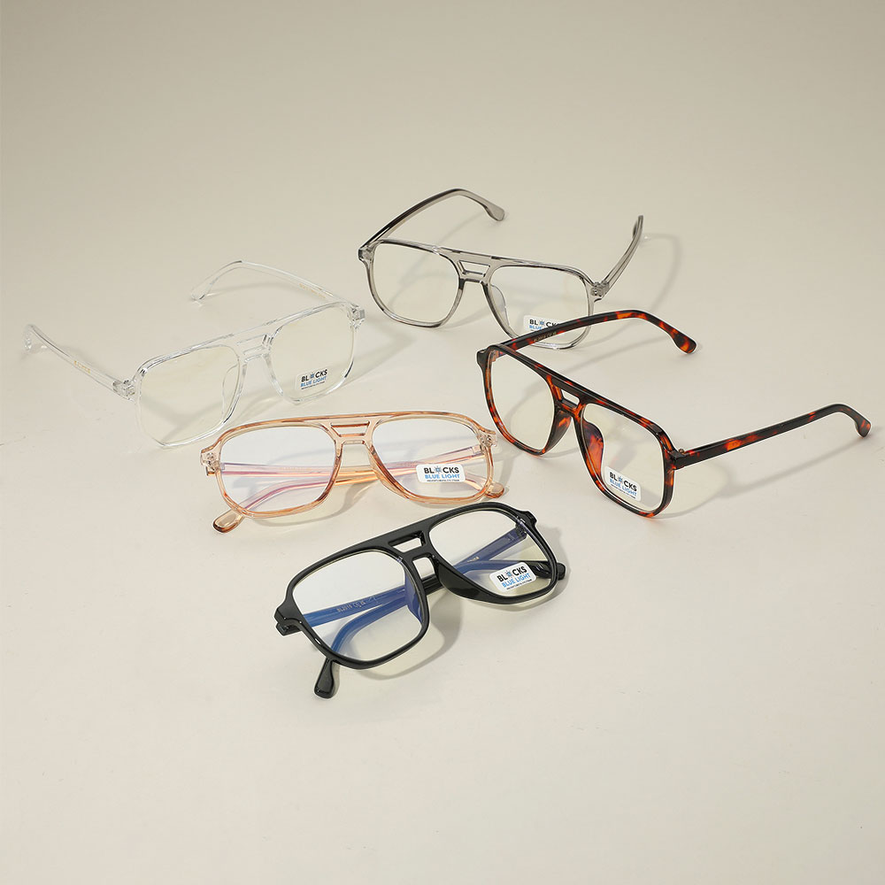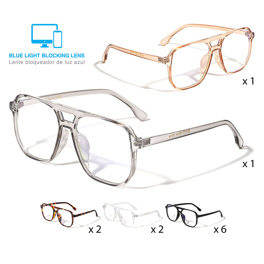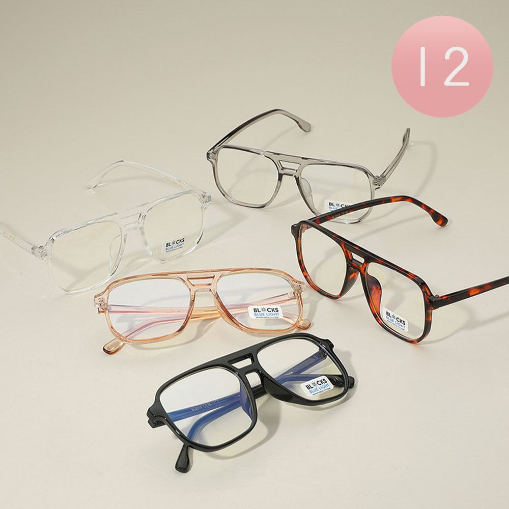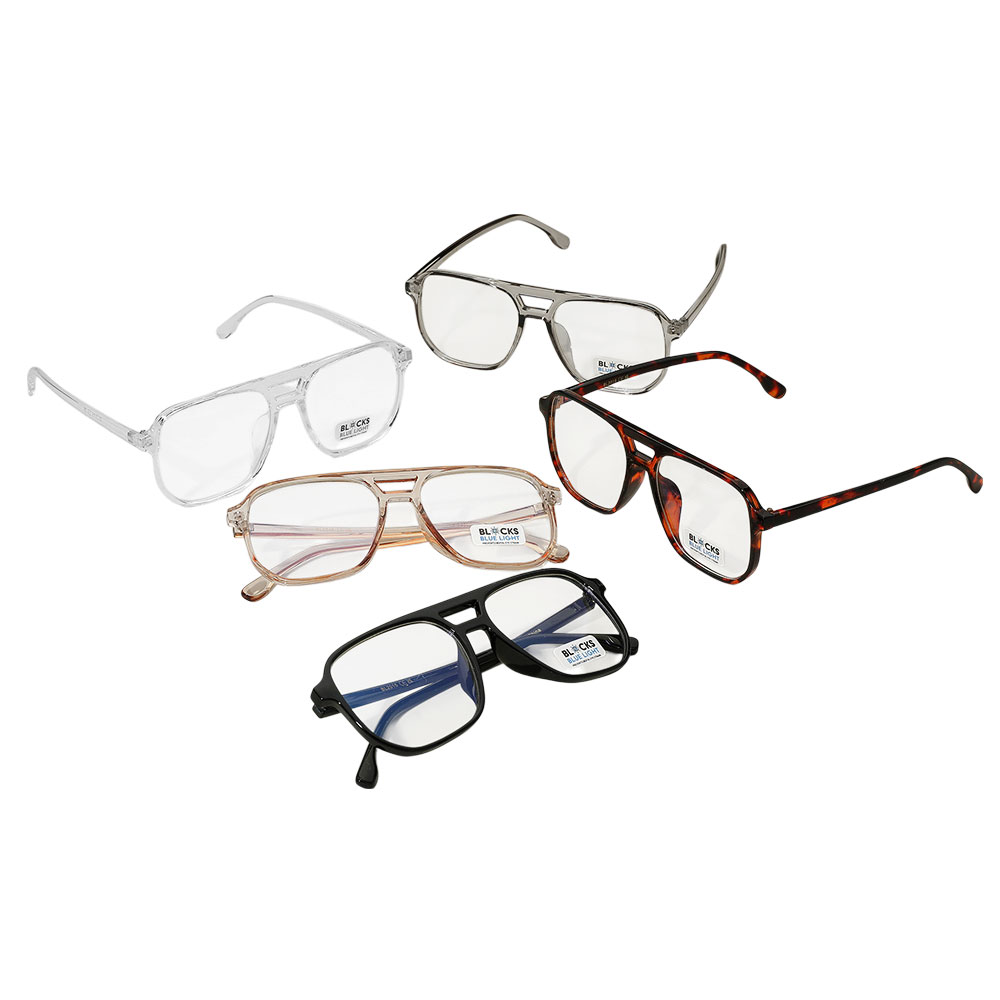 Details • Size : 5.5" X 2" • Filter Blue Light • Assorted blue light blocking glasses designed to reduce eye strain during screen time. Ideal for working, studying, or gaming. Features stylish frames in a variety of classic and trendy shapes.