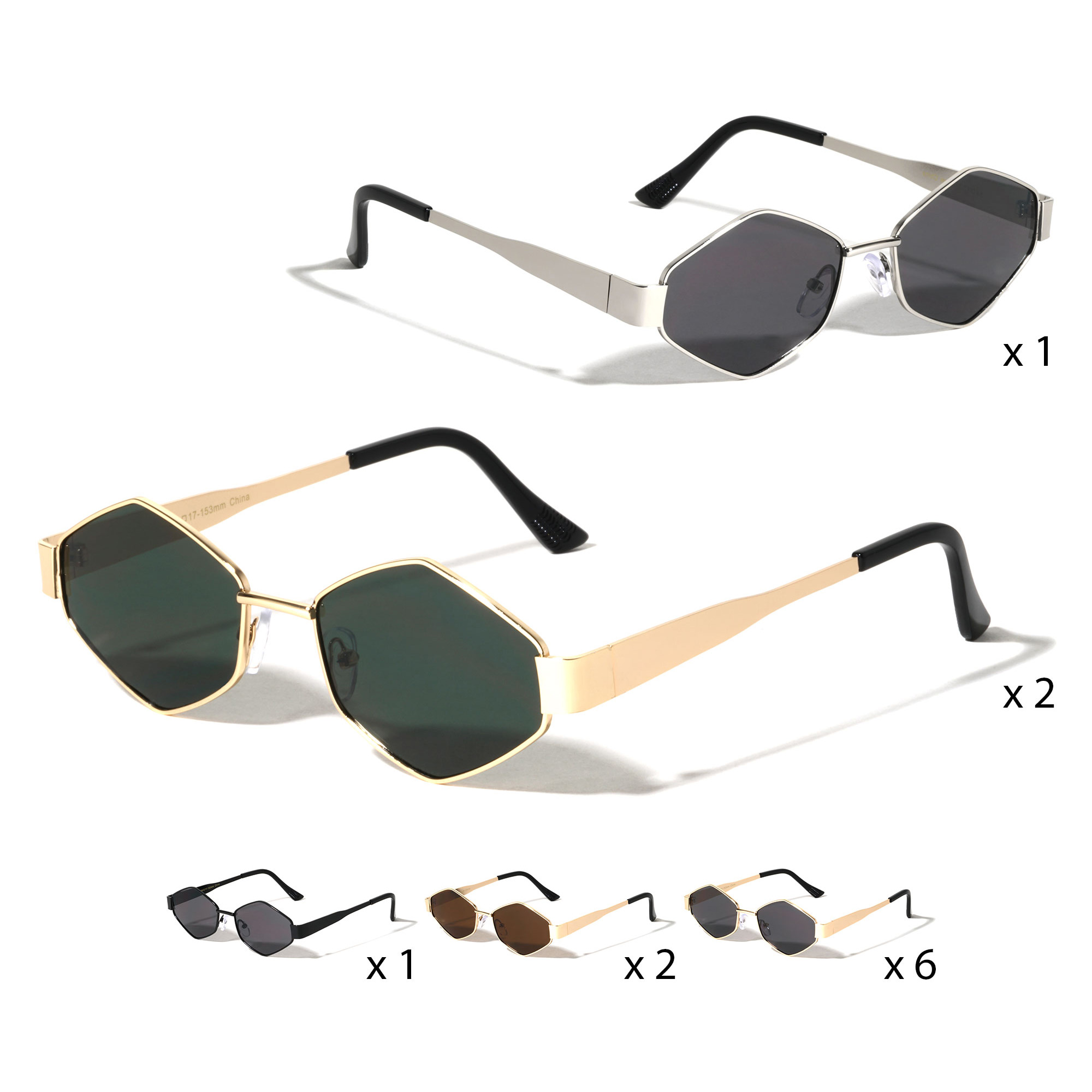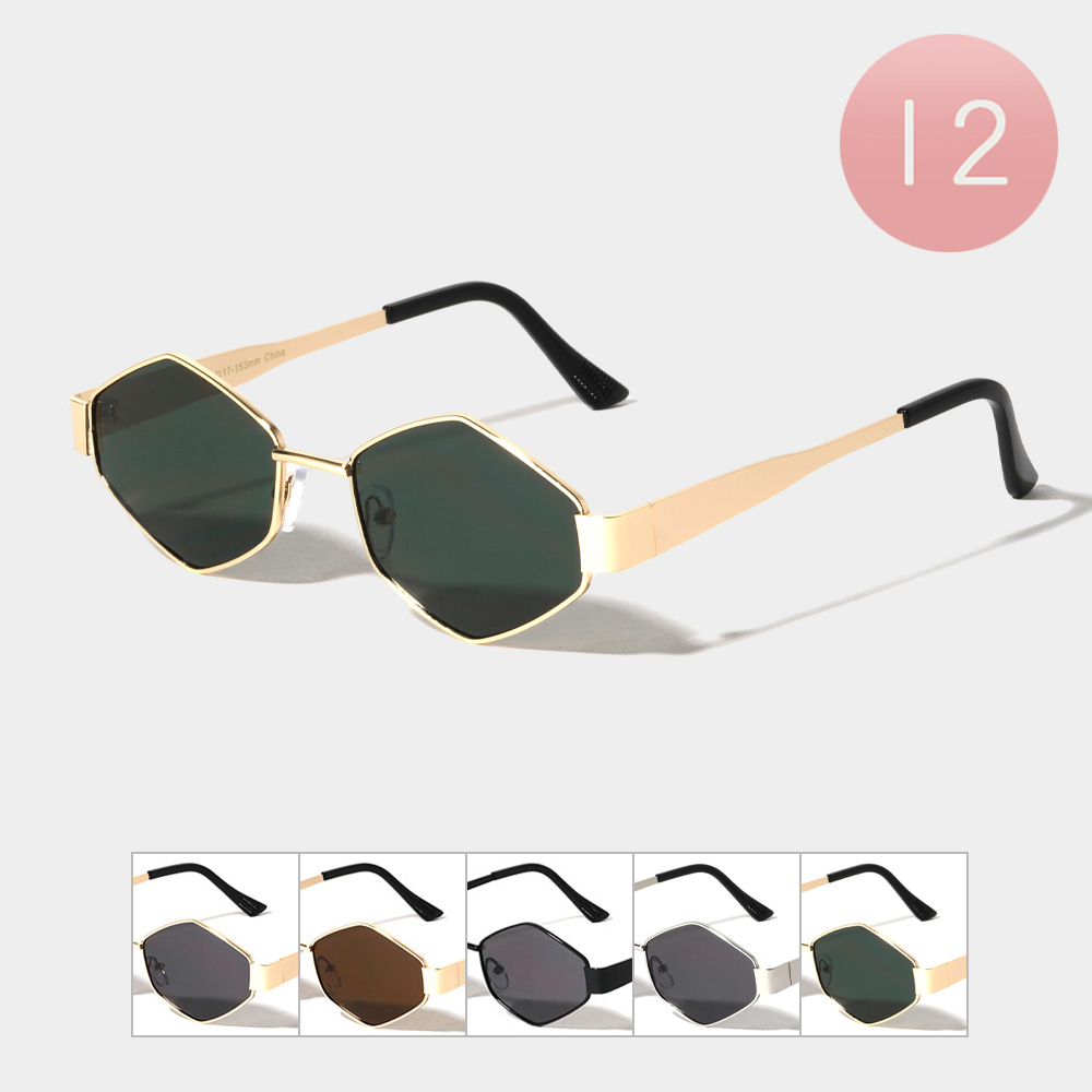 12PCS - Retro Geometric Metal Frame Sunglasses