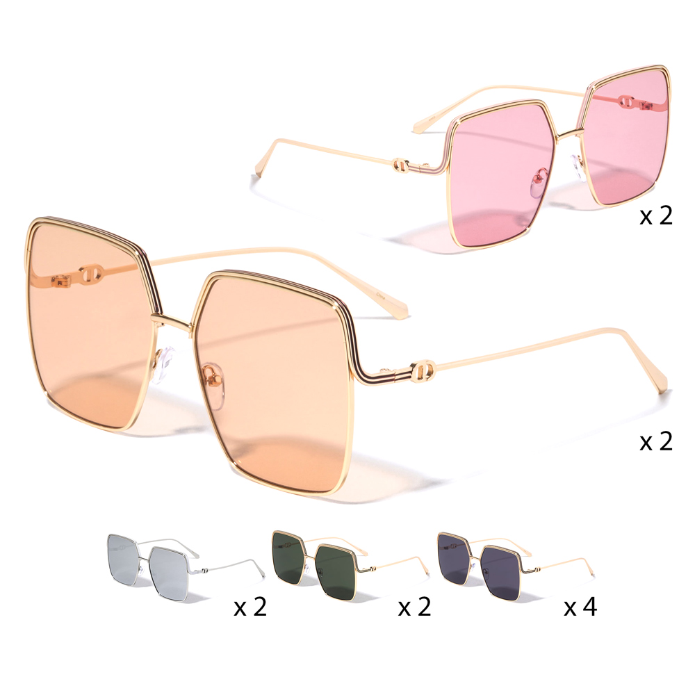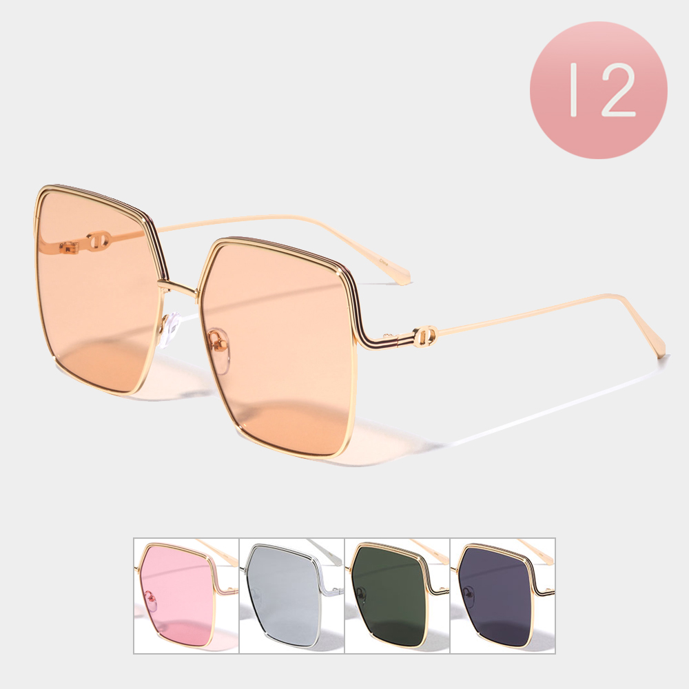 12PCS - Square Tinted Lens Half Rimless Sunglasses