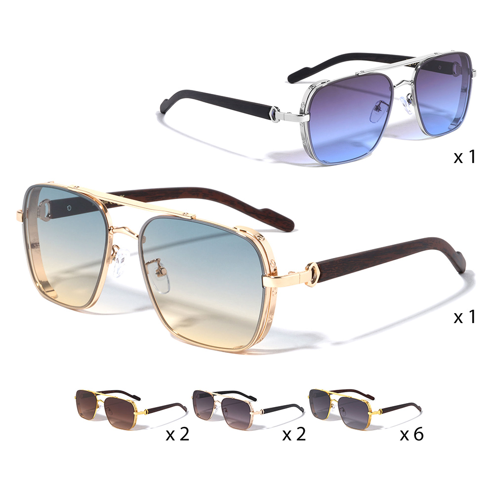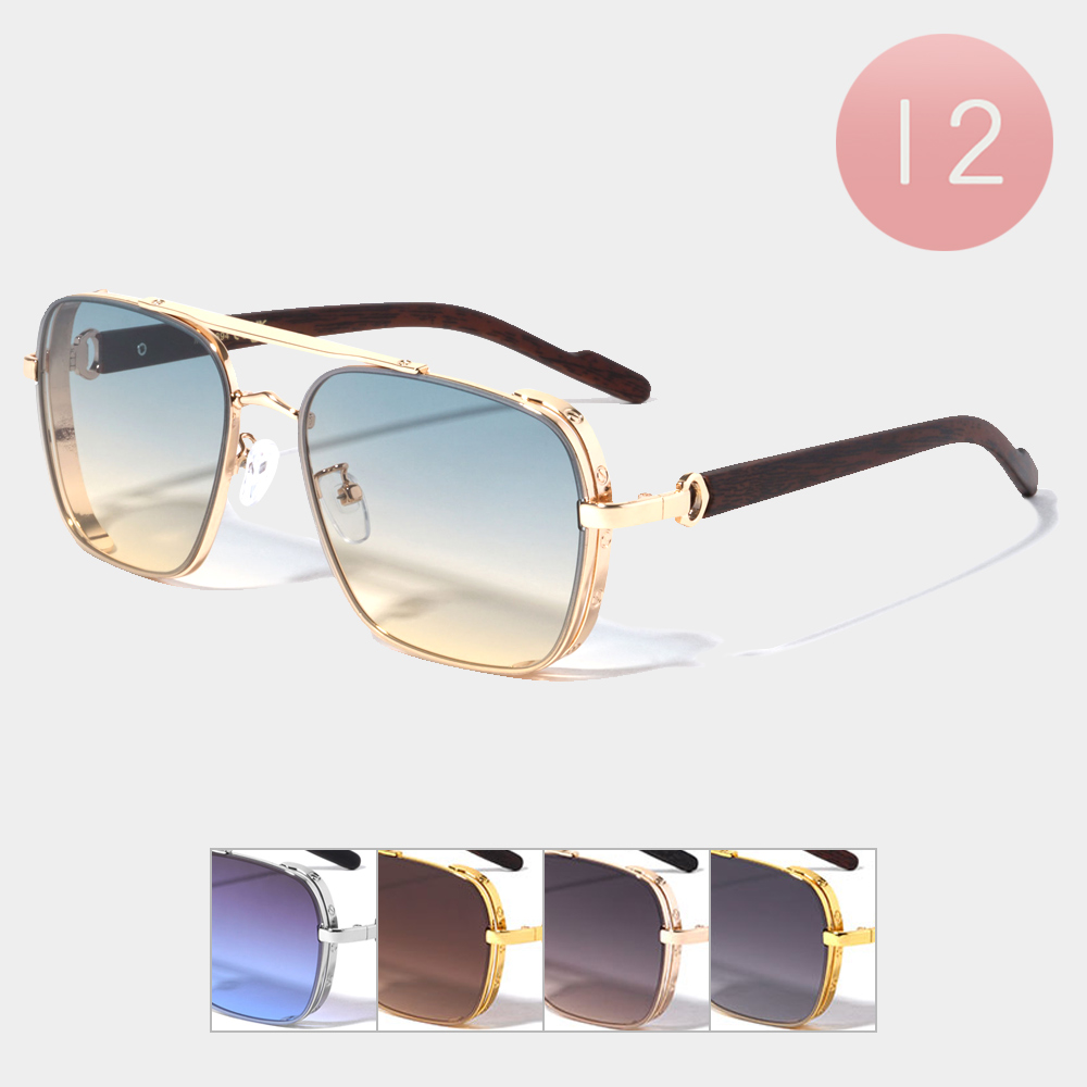12PCS - Square Tinted Lens Metal Frame Wayfarer Sunglasses
