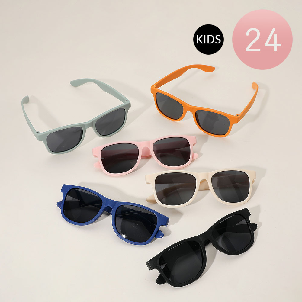 • 24-pack of kids’ wayfarer-style sunglasses in bold, fun colors. UV400 lenses provide sun protection—ideal for party favors, outdoor play, and everyday style.
