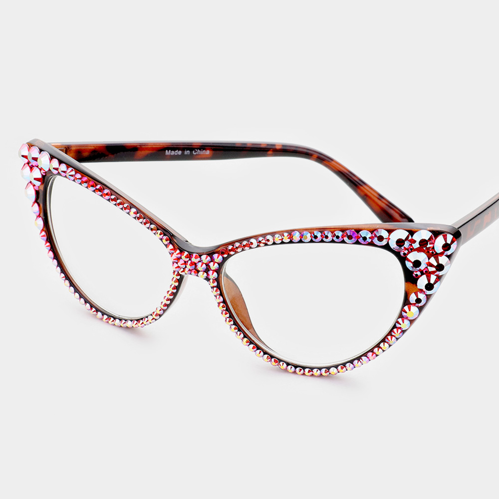 American USA Flag Crystal Cat Eye Clear Lens Sunglasses