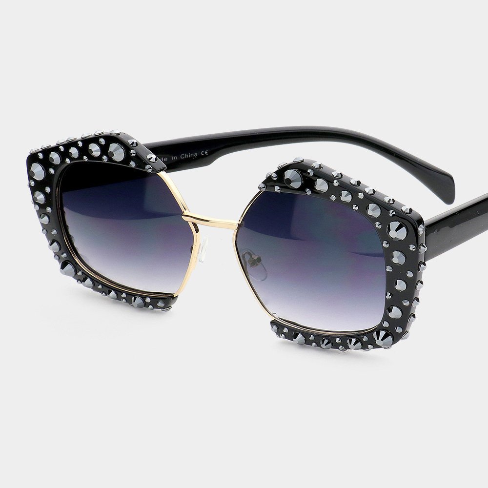 Bling Stone Embellished Angled Sunglasses
