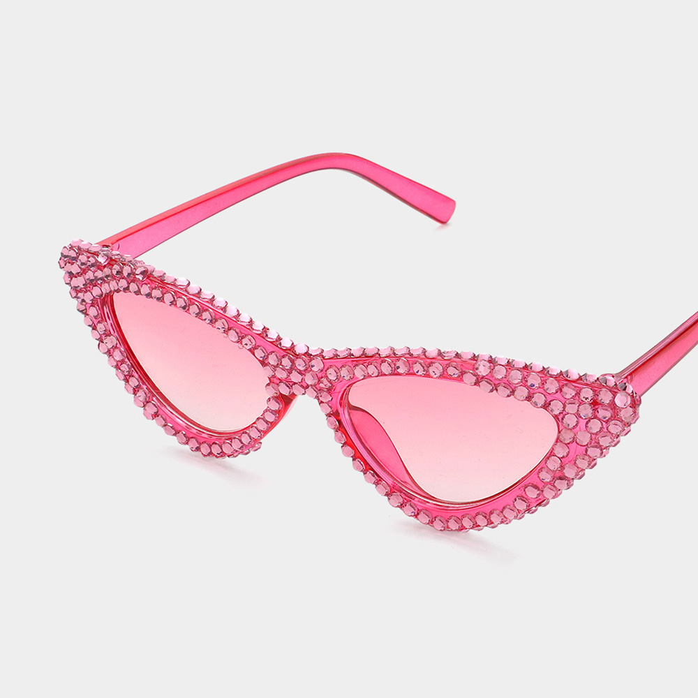 Bling Studded Rim Tinted Lens Oversized Cateye Wayfarer Sunglasses