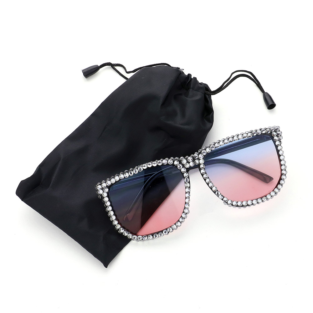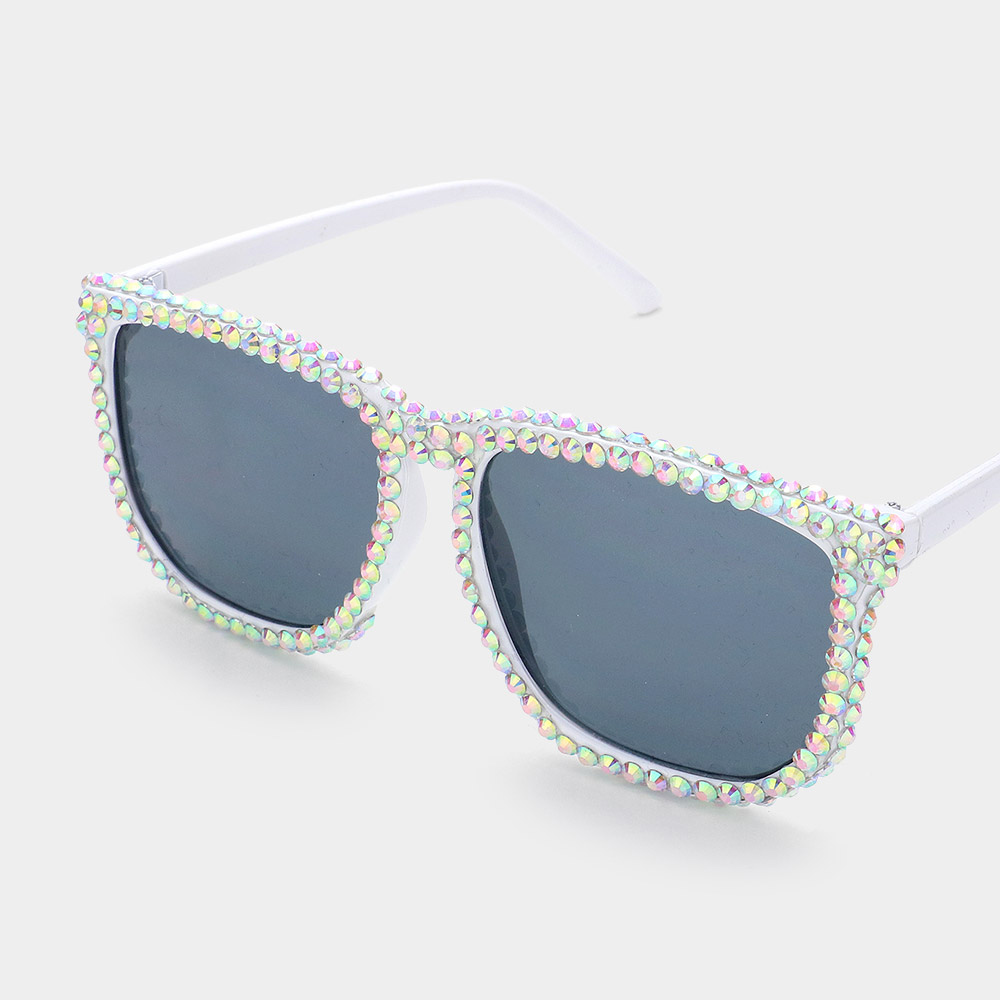 Bling Studded Rim Tinted Lens Oversized Square Wayfarer Sunglasses