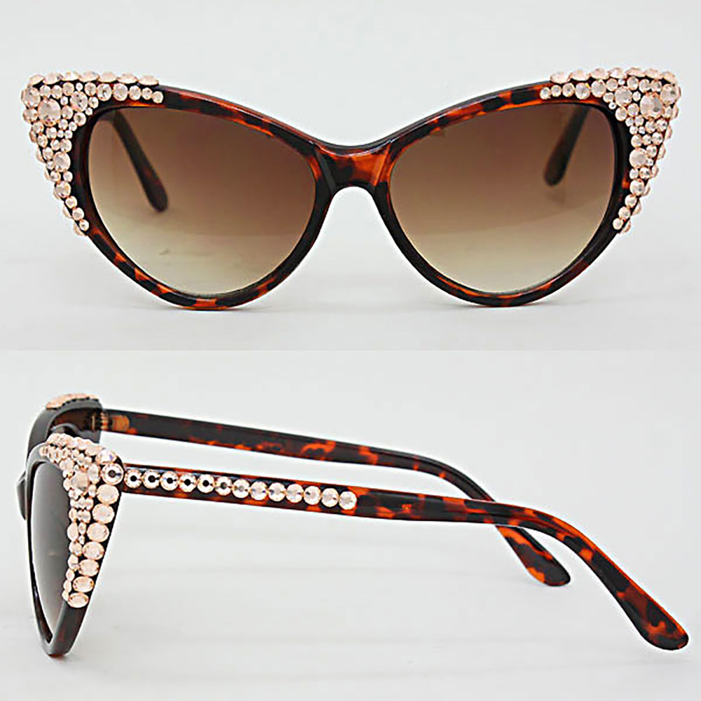 Bubbly Crystal Leopard Cat Eye Sunglasses