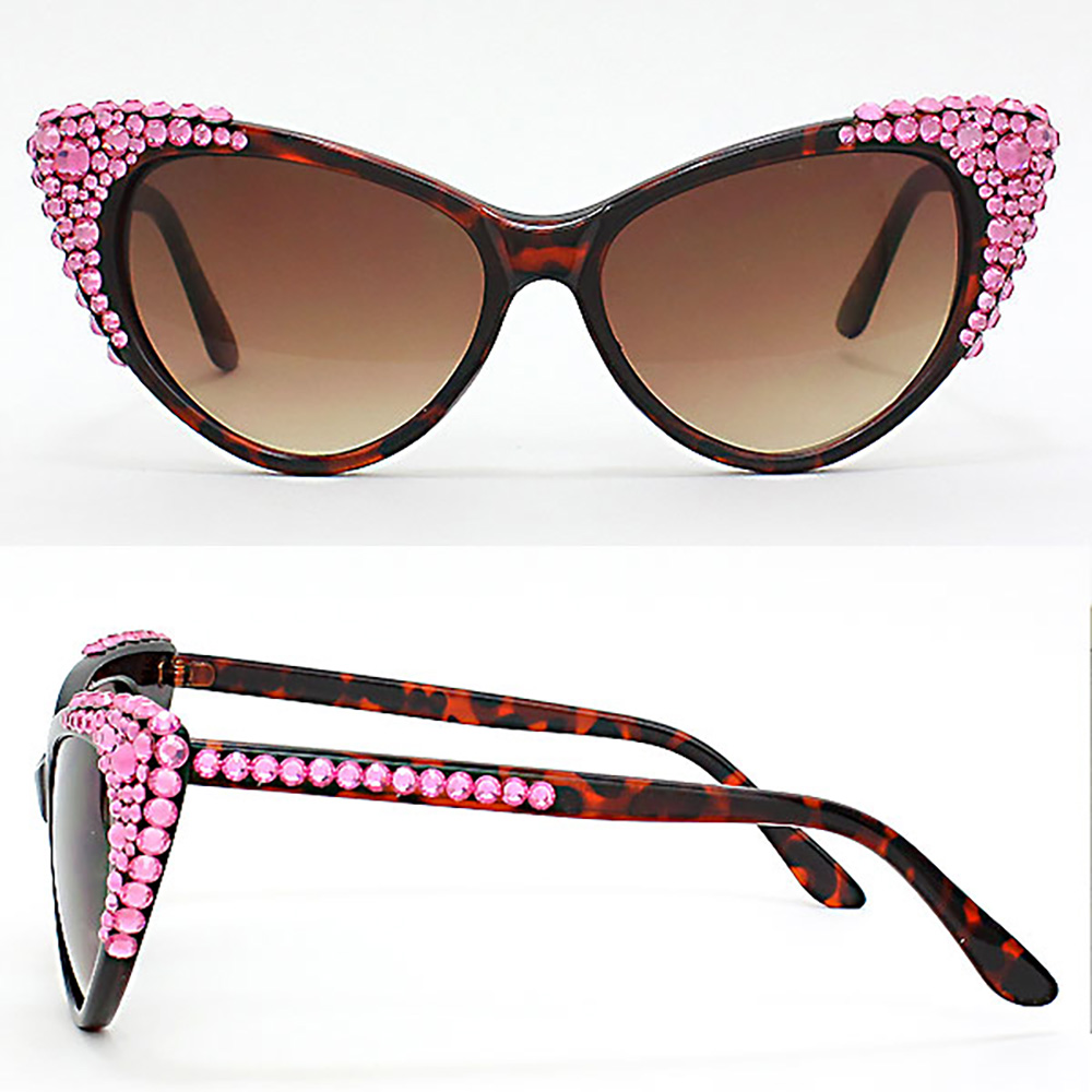 Bubbly Crystal Leopard Cat Eye Sunglasses