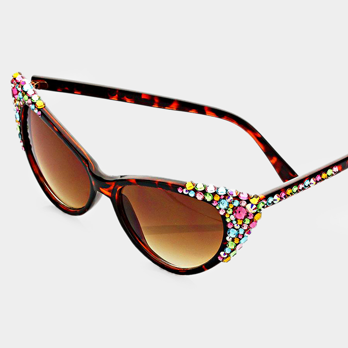 Bubbly Crystal Leopard Cat Eye Sunglasses