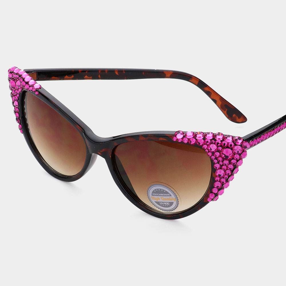 Bubbly Crystal Leopard Cat Eye Sunglasses