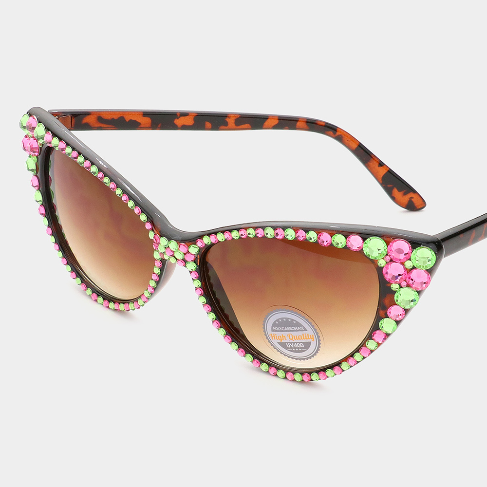 American USA Flag Crystal Cat Eye Clear Lens Sunglasses