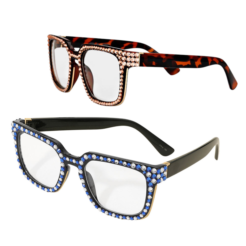 • Make a dazzling impression with these clear lens glasses featuring shimmering rhinestone accents. Perfect for fashion-forward looks, costume parties, or adding sparkle to everyday outfits.