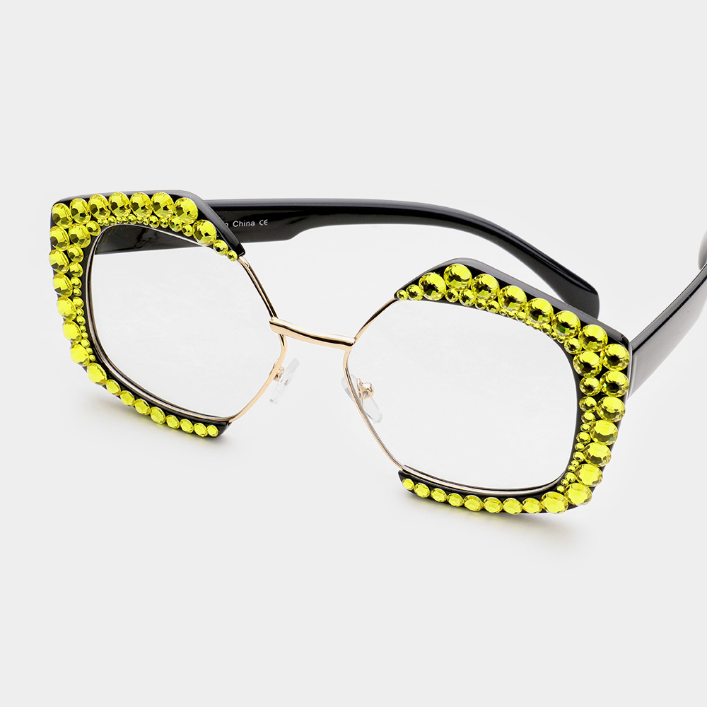 Crystal Embellished Detail Pentagon Clear Lens Sunglasses