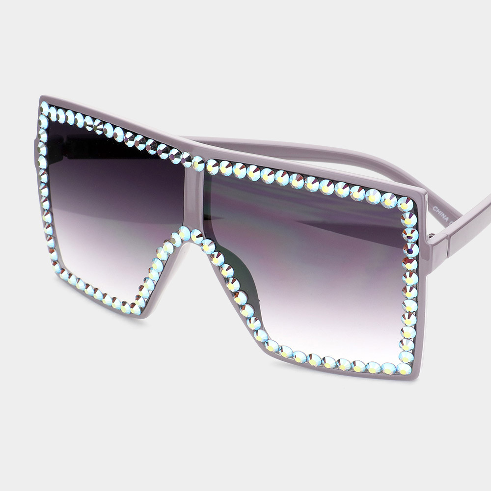 Crystal Embellished Detail Square Sunglasses