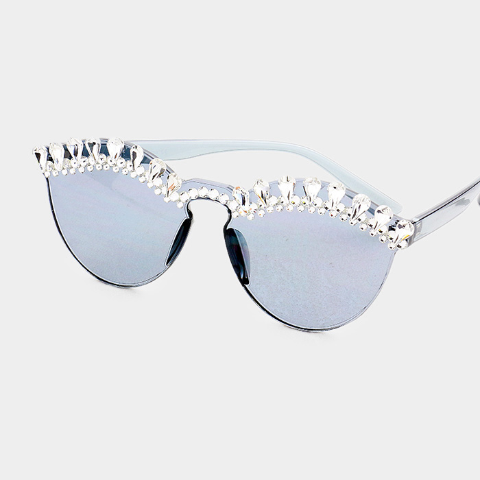 Crystal Embellished Trim Rimless Cat Eyes Sunglass