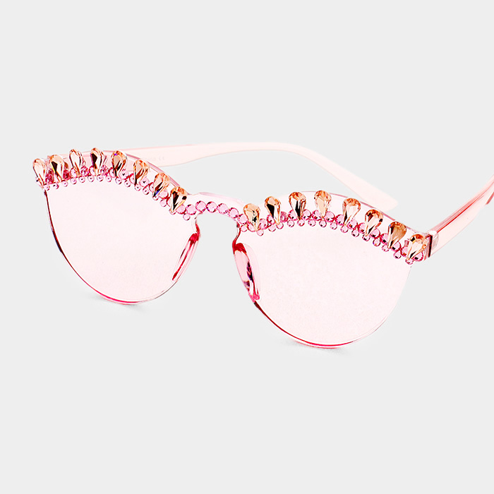 Crystal Embellished Trim Rimless Cat Eyes Sunglass