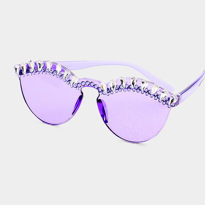 Crystal Embellished Trim Rimless Cat Eyes Sunglass
