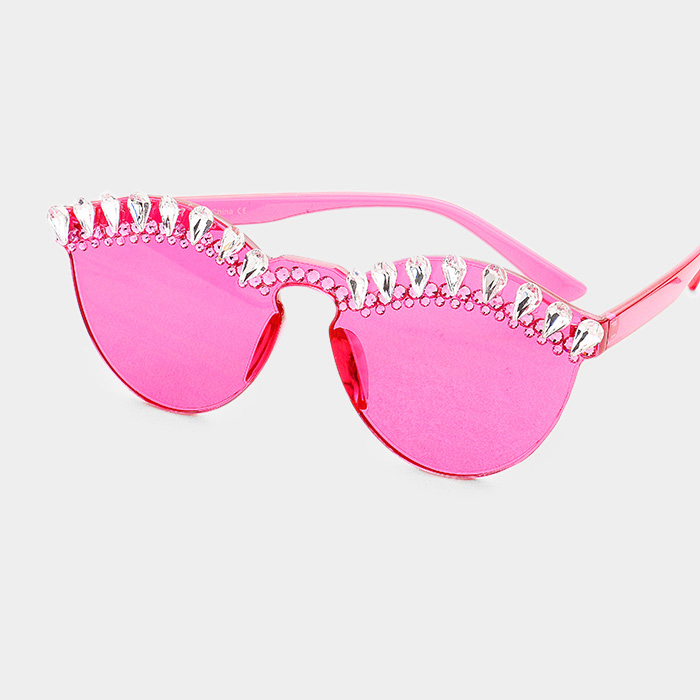 Crystal Embellished Trim Rimless Cat Eyes Sunglass