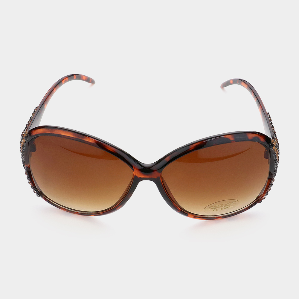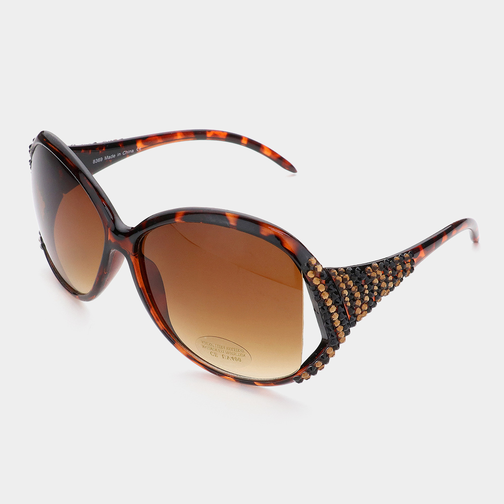 Zebra Pattern Crystal Detail Oversized Sunglasses